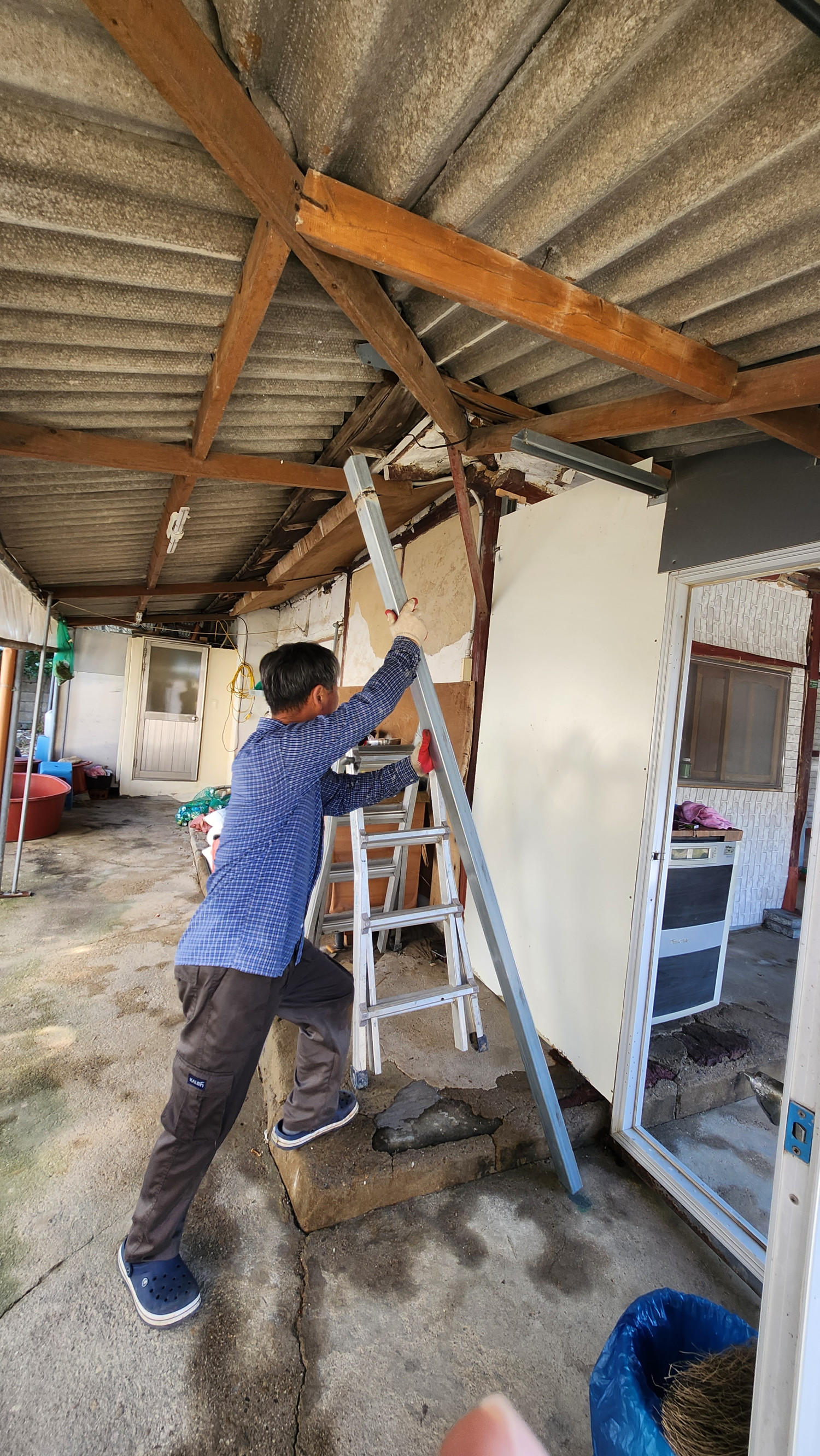 기둥을 다시 세워야해서 긴시간에 걸친 작업끝에 오늘도 불편사항을 말끔하게 해결했습니다.✌️ 사진 속 복지기동대장님의 솜씨가 참 멋있지 않나요?