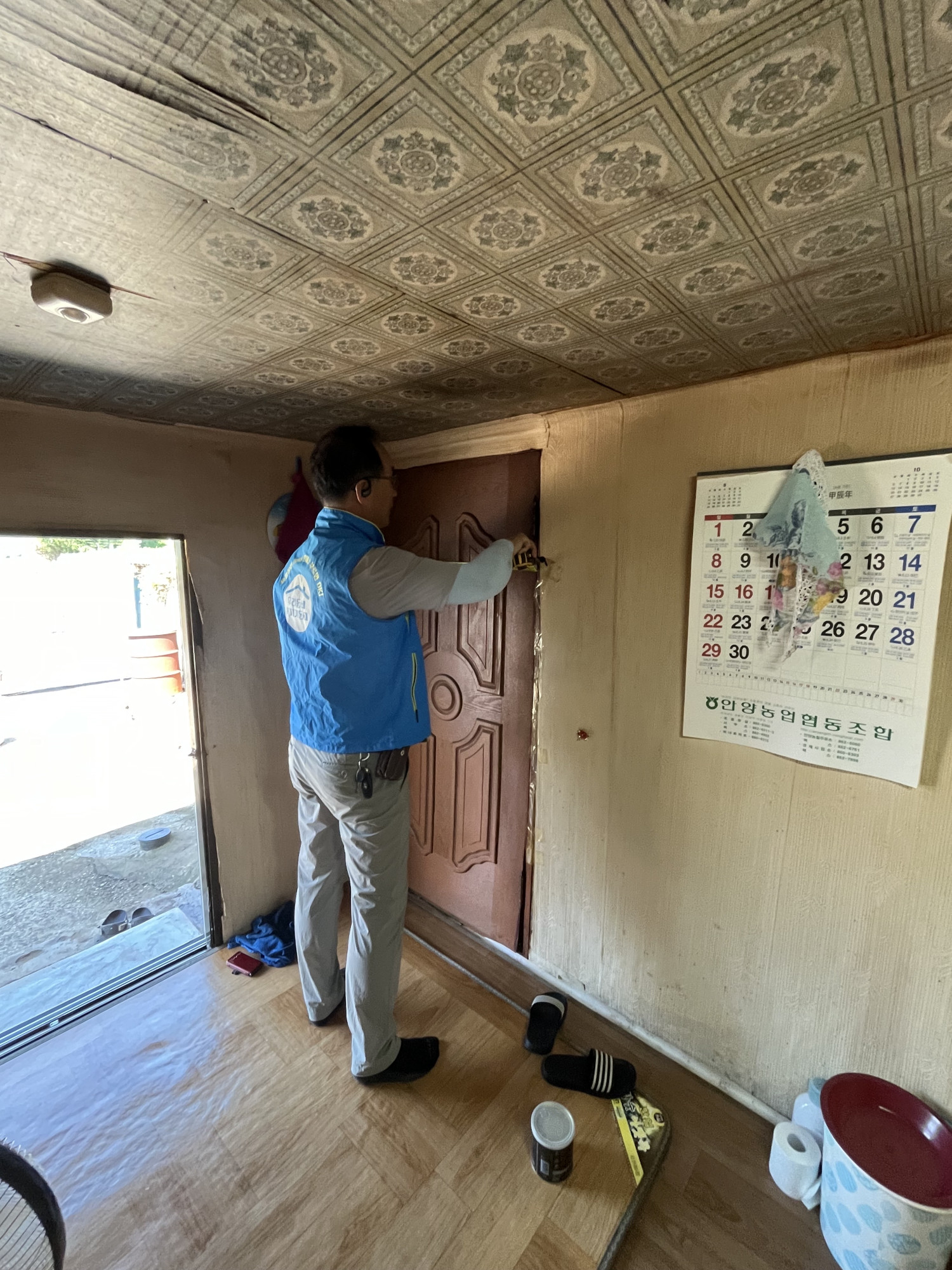 - 고당마을 박O심 할머니는 90세가 넘은 고령의 독거노인이시며 전체적으로 집이 노후화가 된 상태임. 화장실 문의 경우 나무문으로 되어 있어서 밑부분이 다 갈라진 상태며, 안방 벽지 및 장판도 오래되어 교체가 필요한 상황이었음. 안양면행정복지센터에 일을 보러 오시면서 복지기동대 사업 의뢰를 하심.