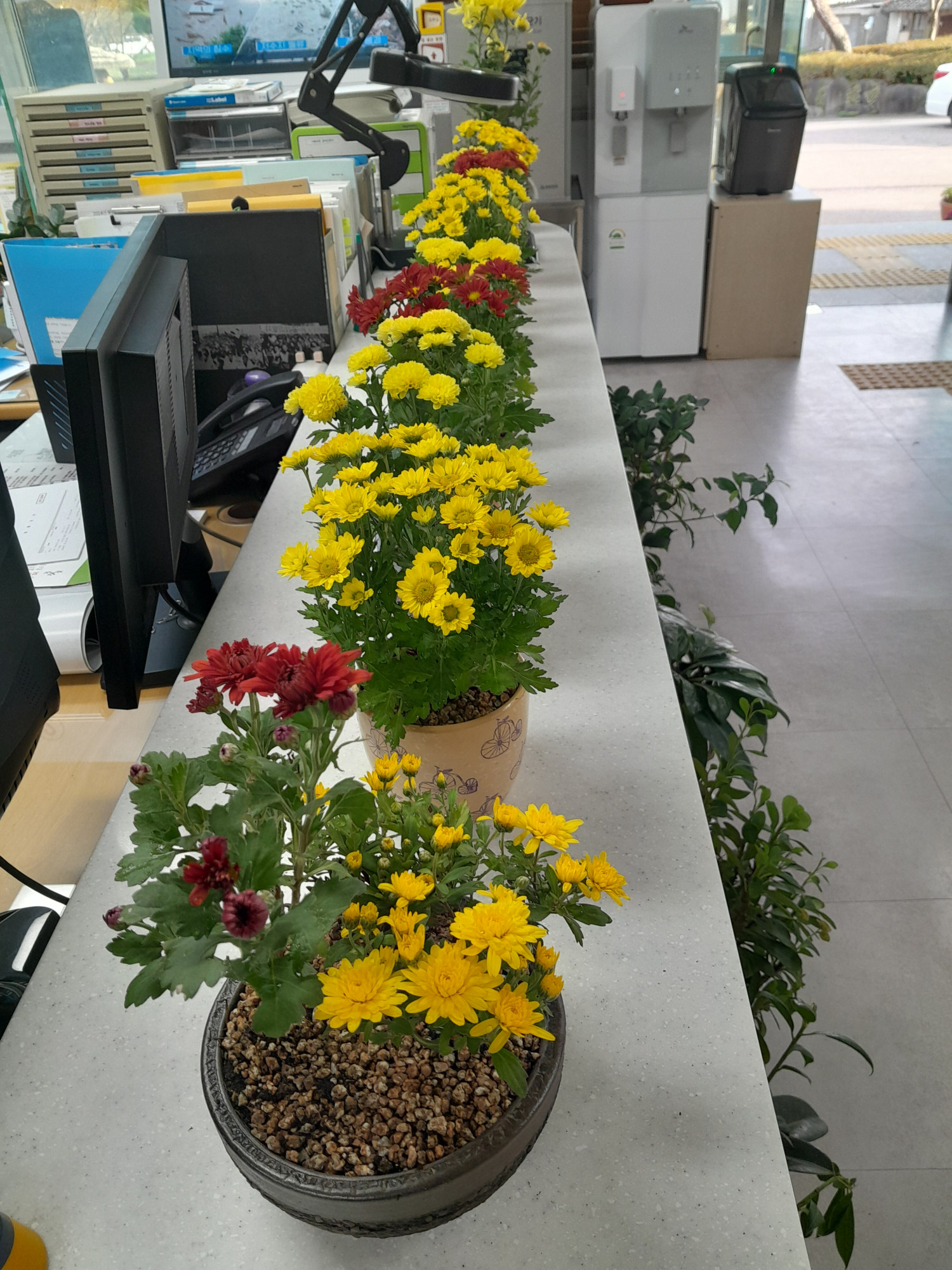 이번 행사는 우리동네 복지기동대와 지역사회보장협의체의 적극적인 협조로 어르신들이 직접 맨손으로 흙의 촉감을 느끼며 국화꽃을 화분에 심고 이름표를 만들어 달아 주었으며, 자투리 국화꽃을 이용해 정성껏 만든 화분을 면사무소 한 켠에 놓아 민원인들에게 화사함과 향긋함을 함께 전하며 더 큰 온기나눔을 실천했다.