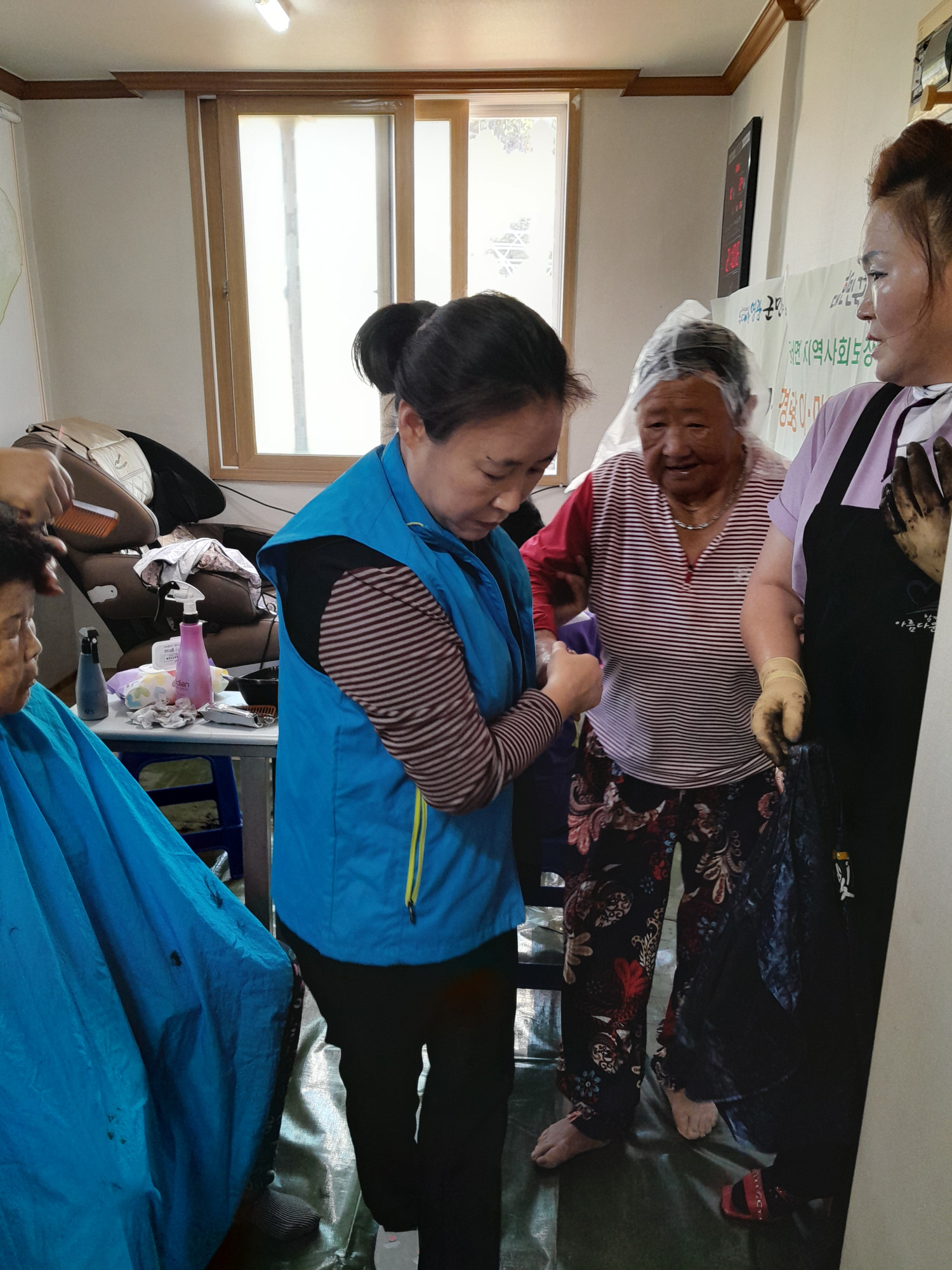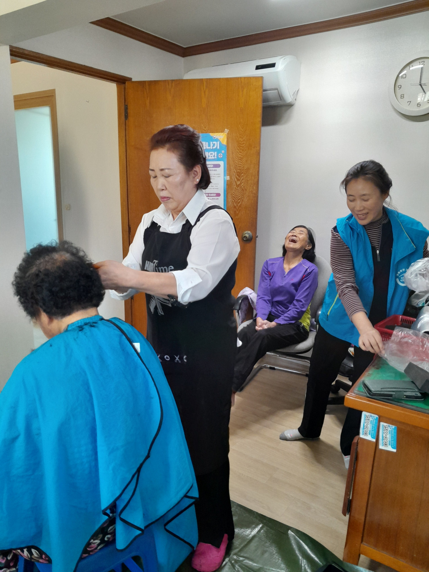 이날 행사에는 경로당 이용 어르신에게 커트 및 염색 지원, 건강관리프로그램(혈압, 혈당, 맛사지볼 이용 근육완 운동) 실시, 방문복지사업 안내, 홍보물품 등을 지원하는 뜻 깊은 시간을 보냈다.
