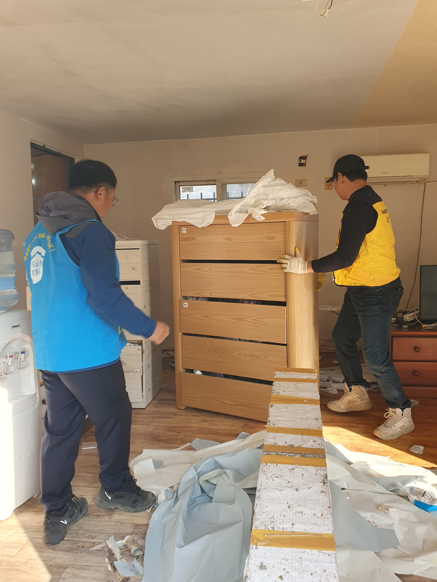 옹암마을 어르신 집의 오래된 벽지를 새롭게 교체하였습니다. 몸이 불편하신 어르신을 위해 짐 정리까지 완벽하게 해주셨습니다.