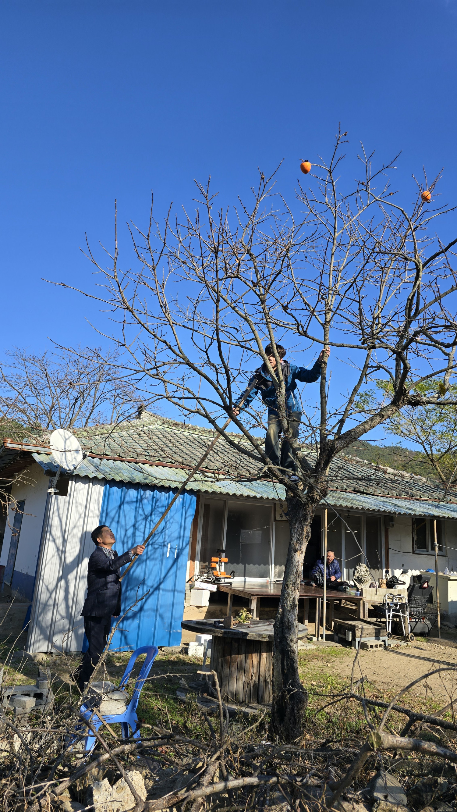 축산사업소에 연계하는 민원 처리😄 및 다리가 불편하셔서 나무꼭대기에 달린 감🍊을 못 따시고 쳐다만 보시던😭 주민을 위해 직접 감을 따서 드리는 민원처리까지 짧은 시간이지만 알차고 즐거운 출장이었습니다🤣 😍😁