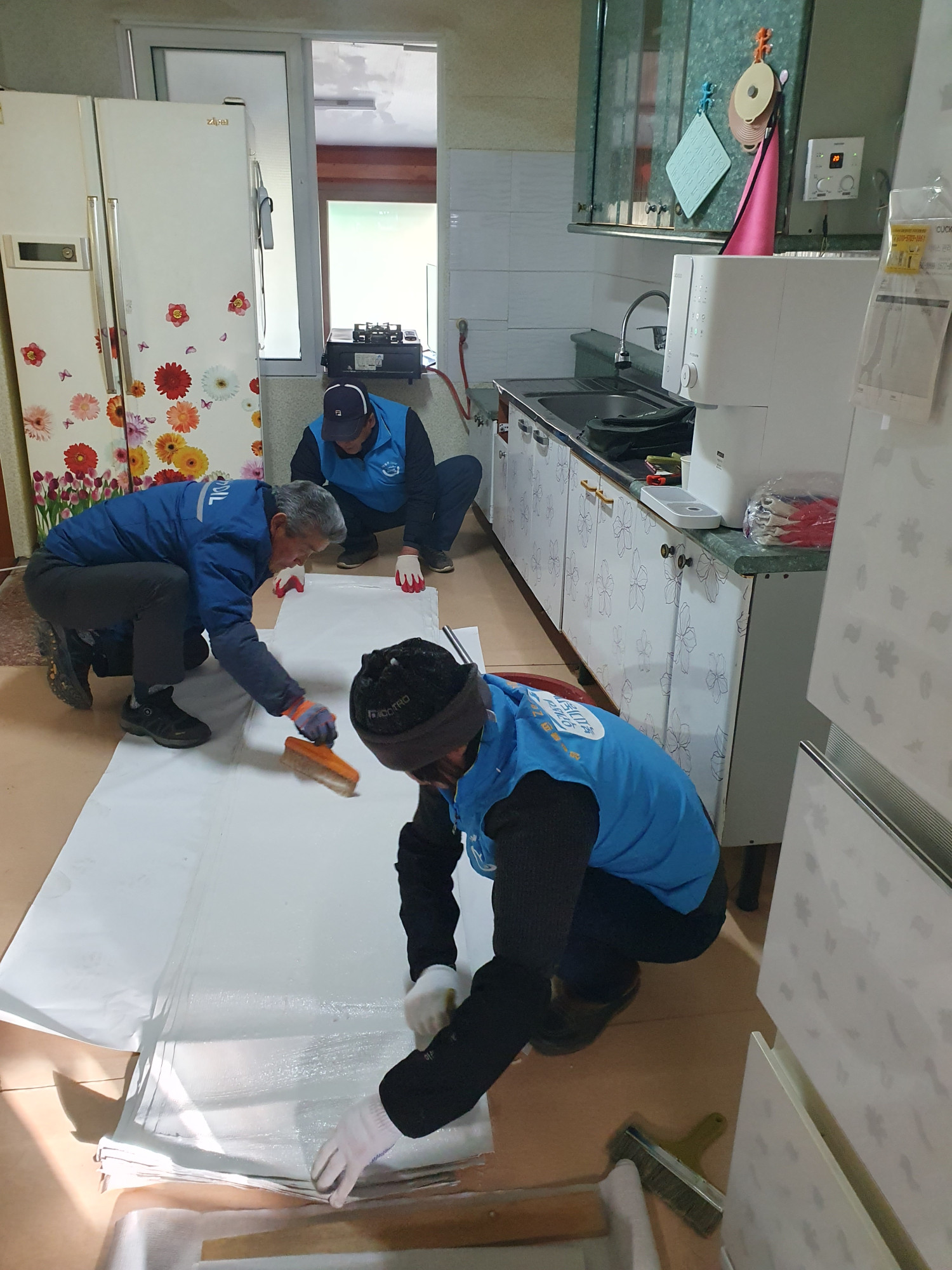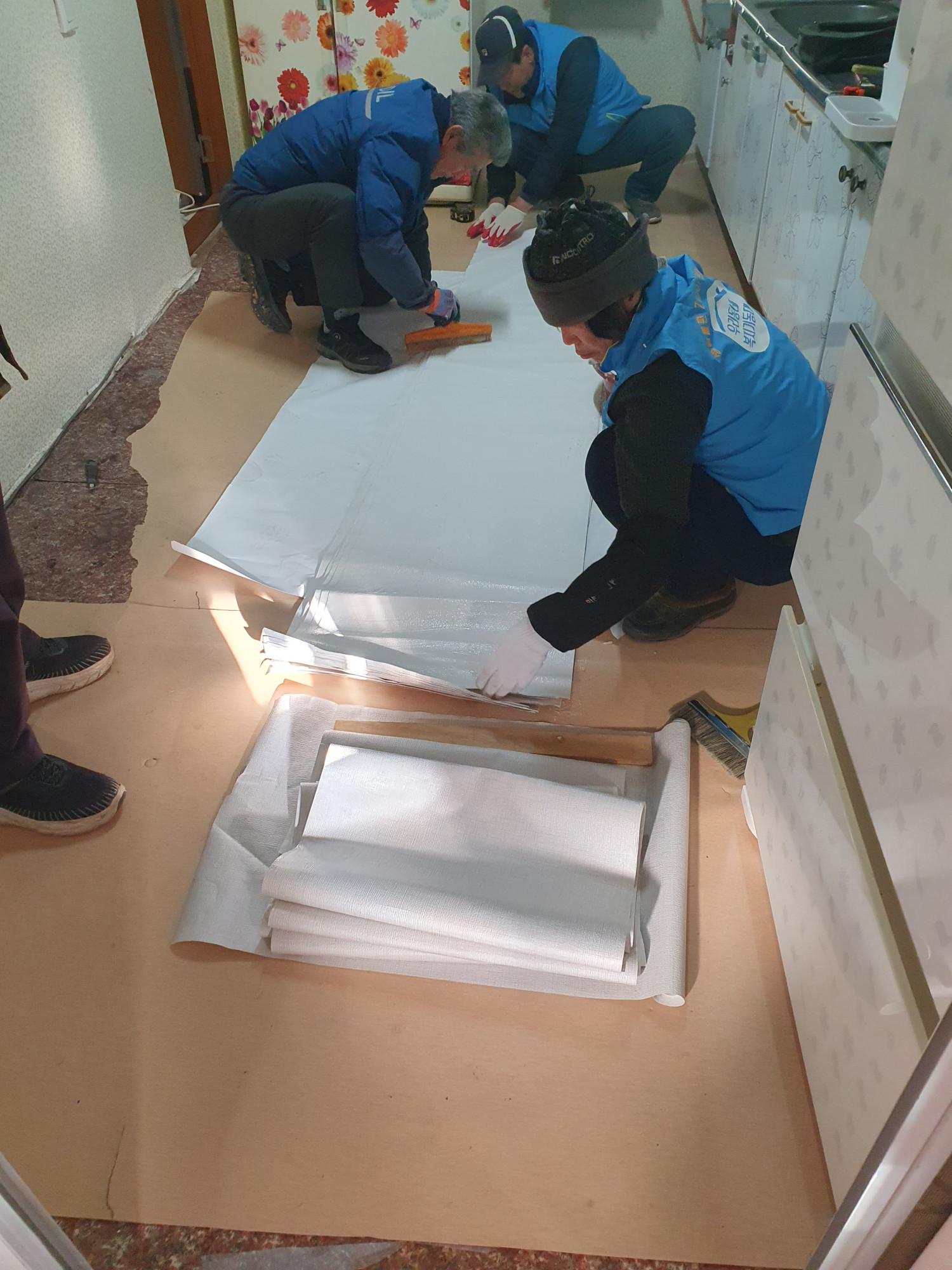 삼산면 복지기동대는 농암마을 어르신 집의 도배와 장판을 교체하는 봉사활동을 진행하였습니다.