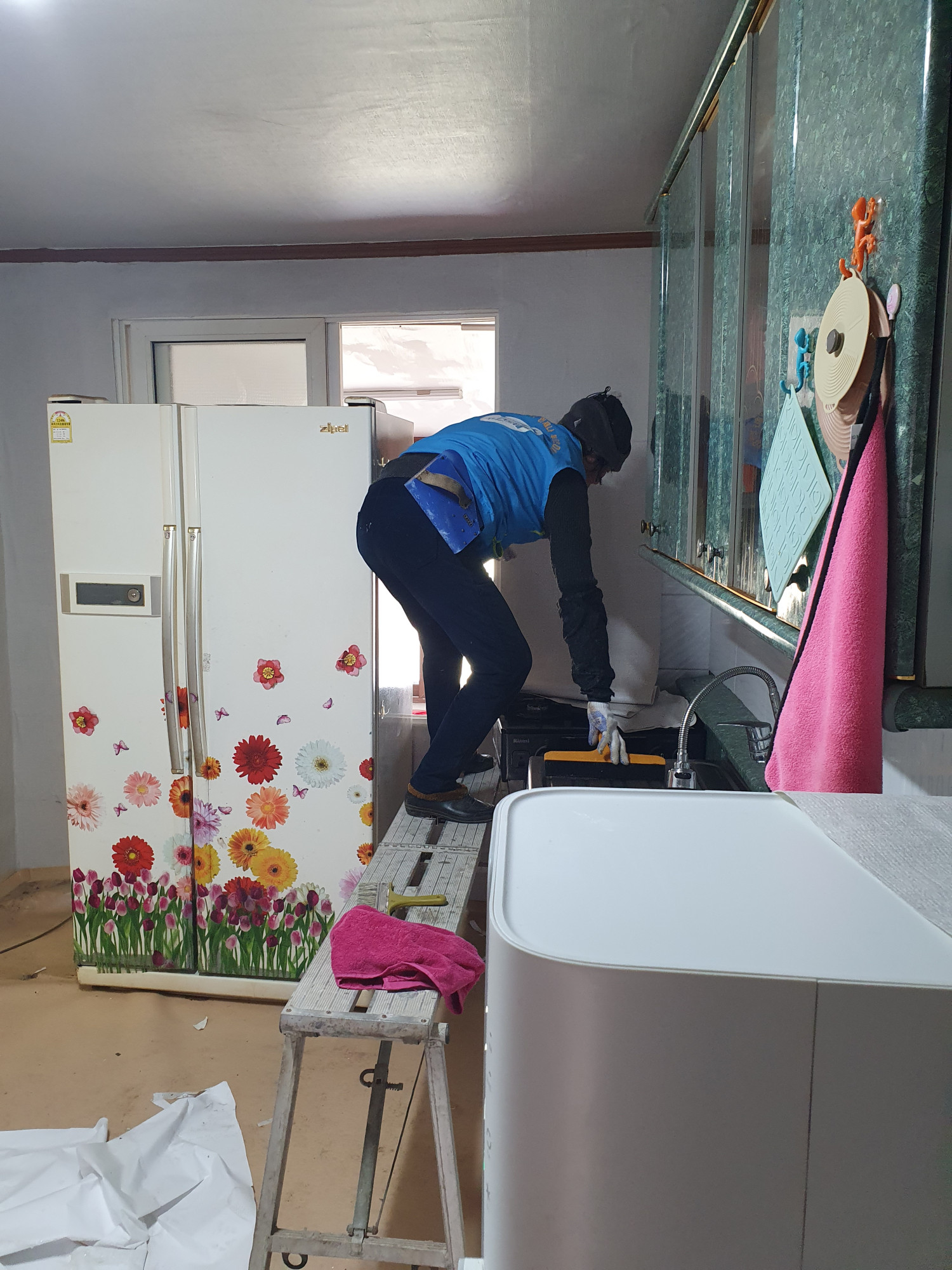 추운 날씨 속에서도 어르신에게 따뜻한 집을 만들어 드리기 위해 모두가 힘을 모았습니다.