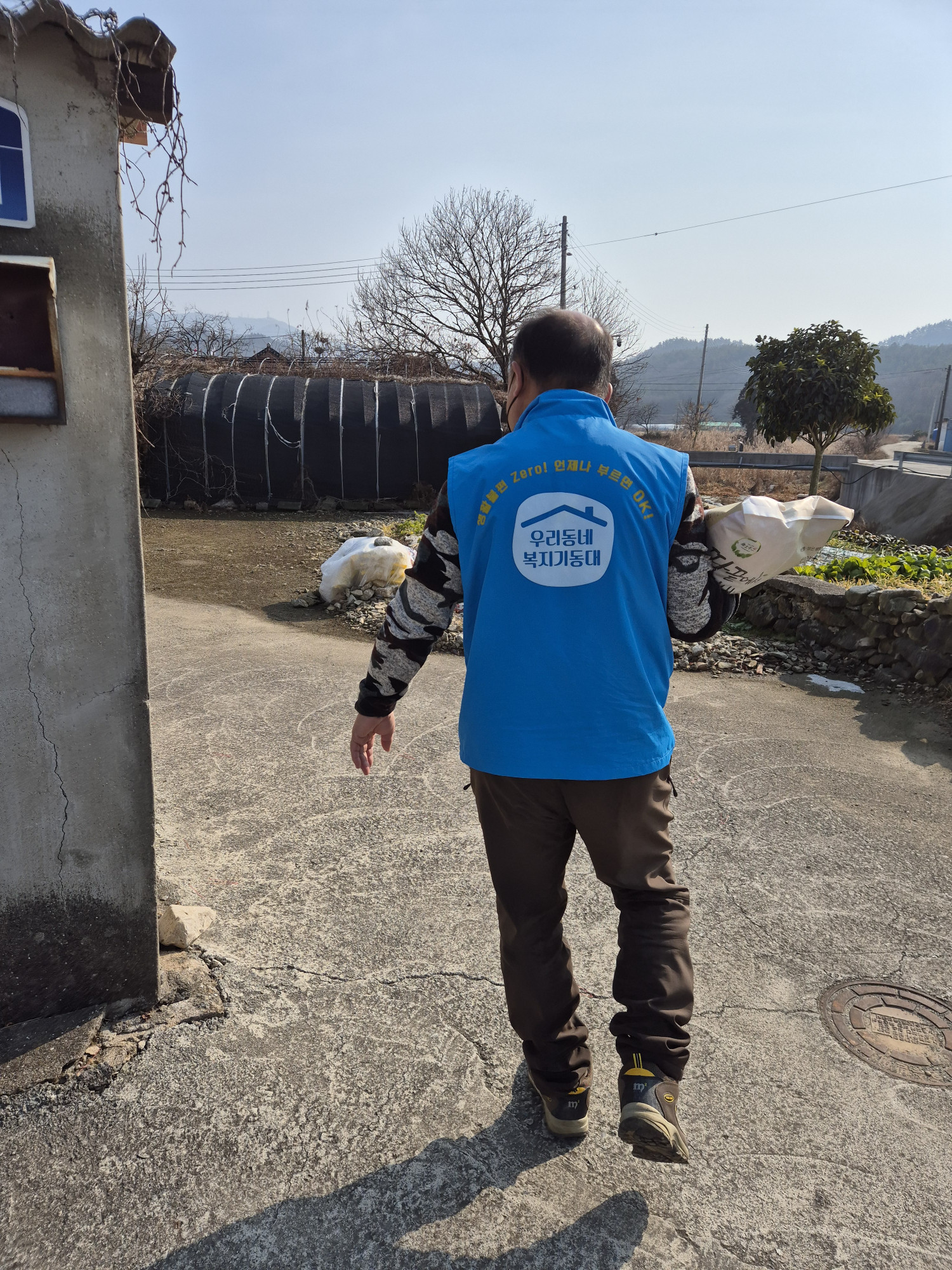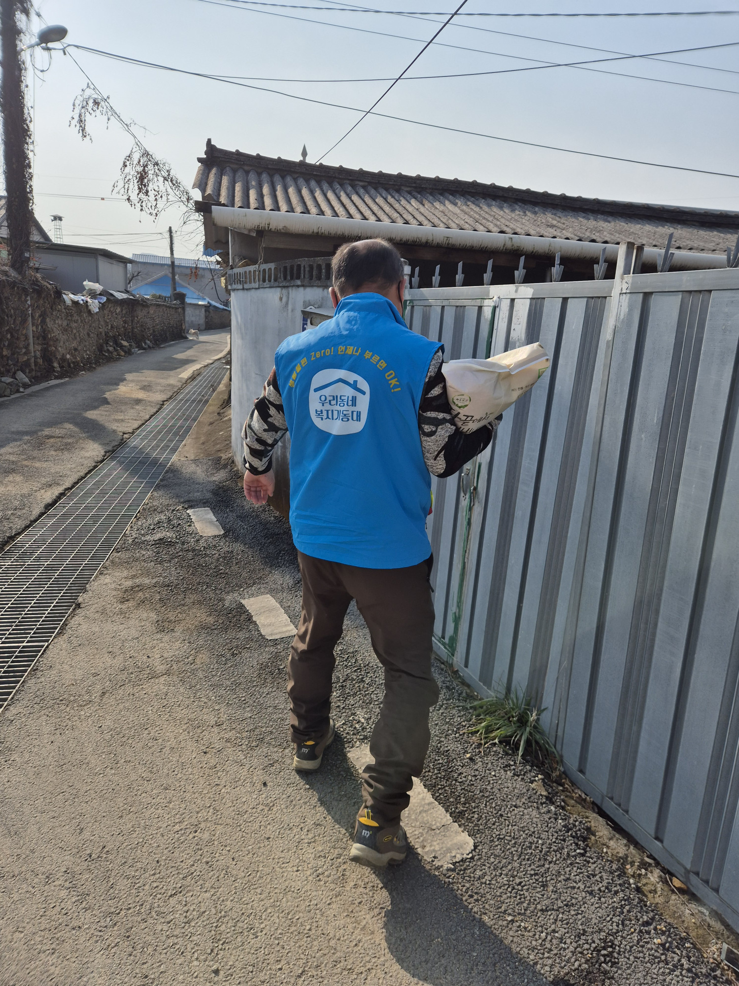 현산면 복지기동대는 1. 9.~1. 14.(4일간)에 경로당(38개소)와 저소득계층(62세대)을 직접 방문하여 후원물품(백미 10kg)을 전달하고 동절기 1기동대원과 1가구 안부살피기를 진행했습니다.