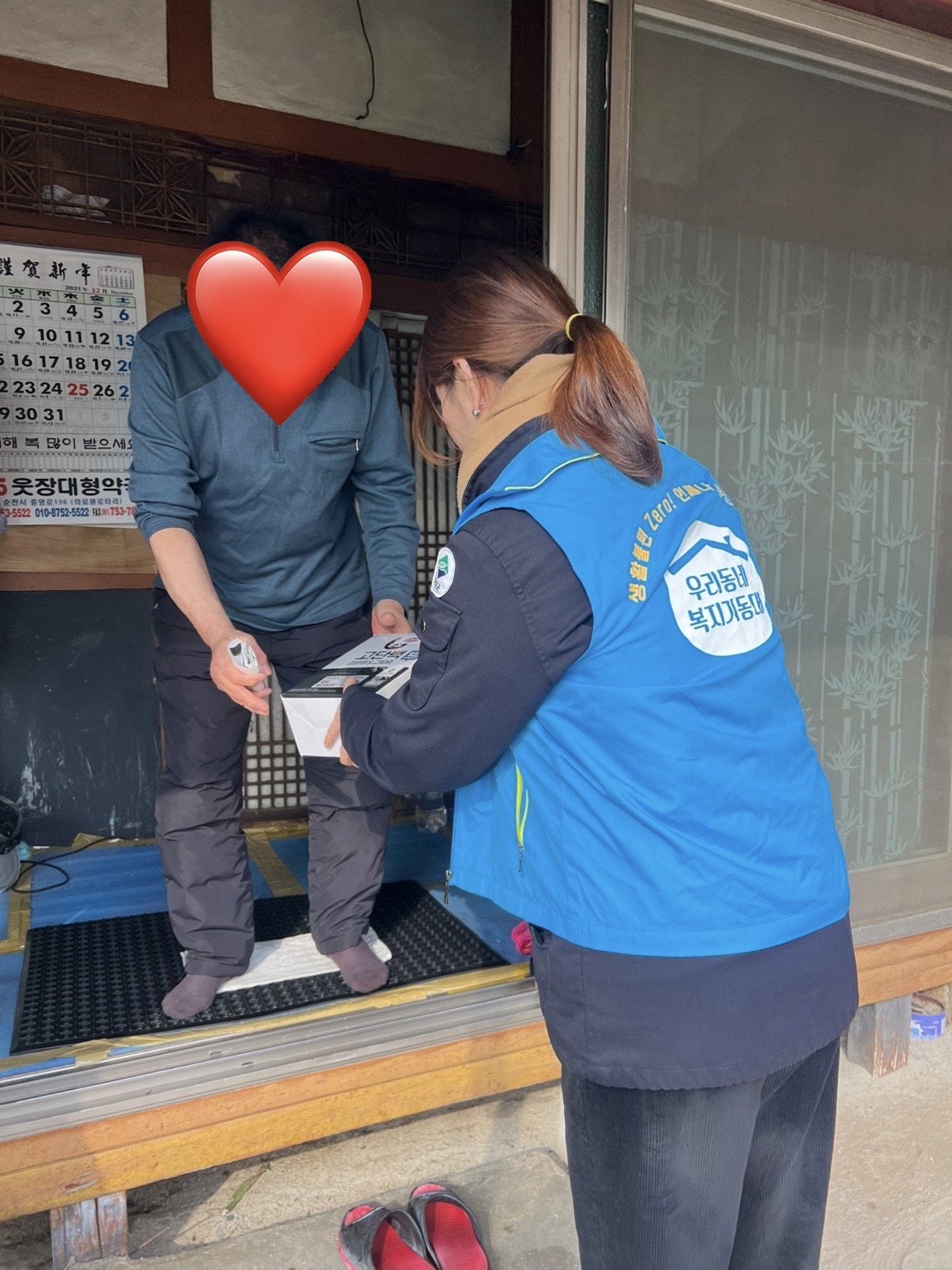 복지기동대를 통해 발굴된 위기가구를 방문해 두유를 전달하고 안부를 살폈습니다.