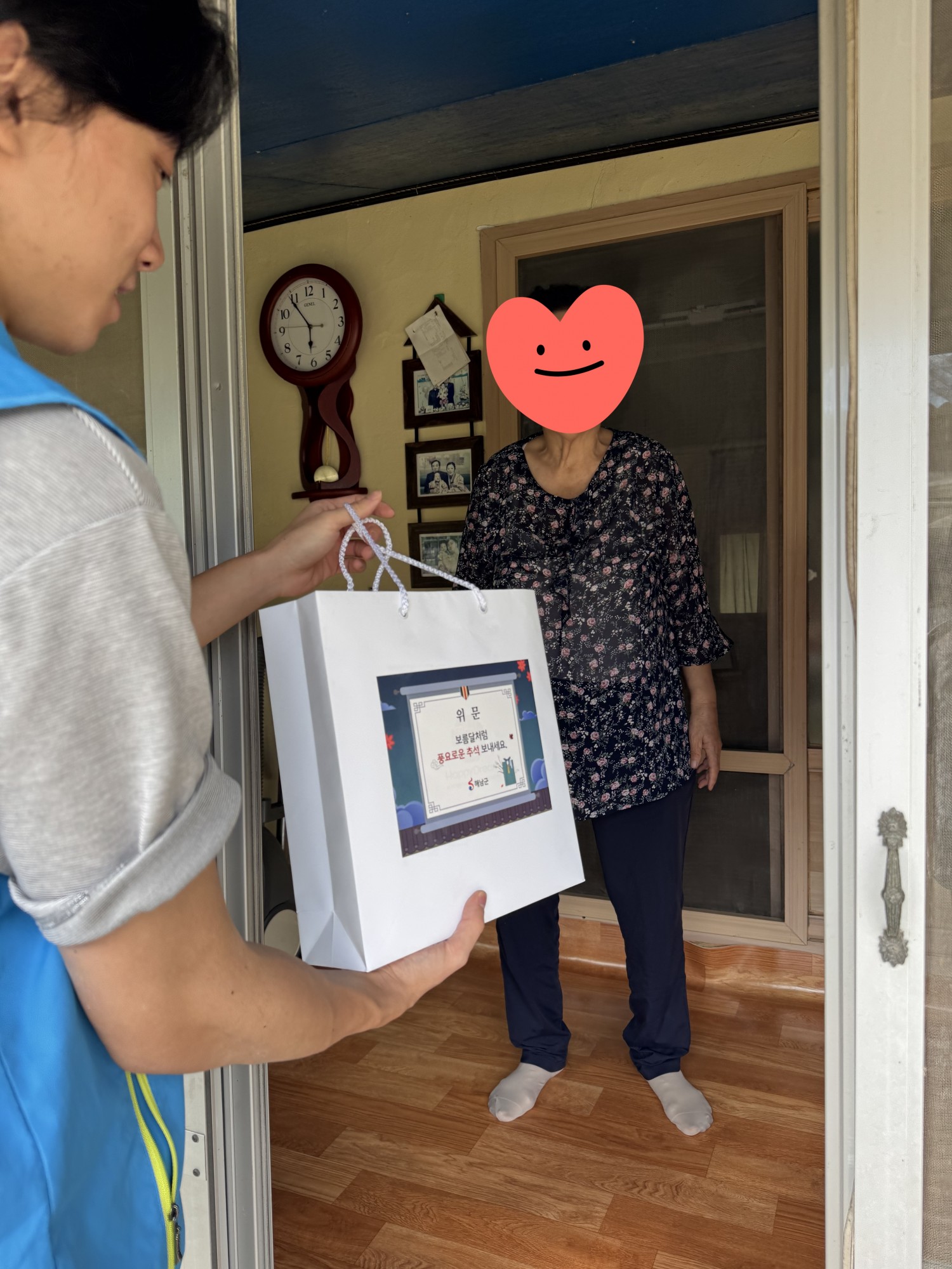 위문품을 전달하고 말벗도 해드렸습니다.?