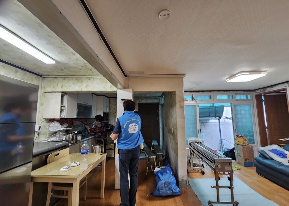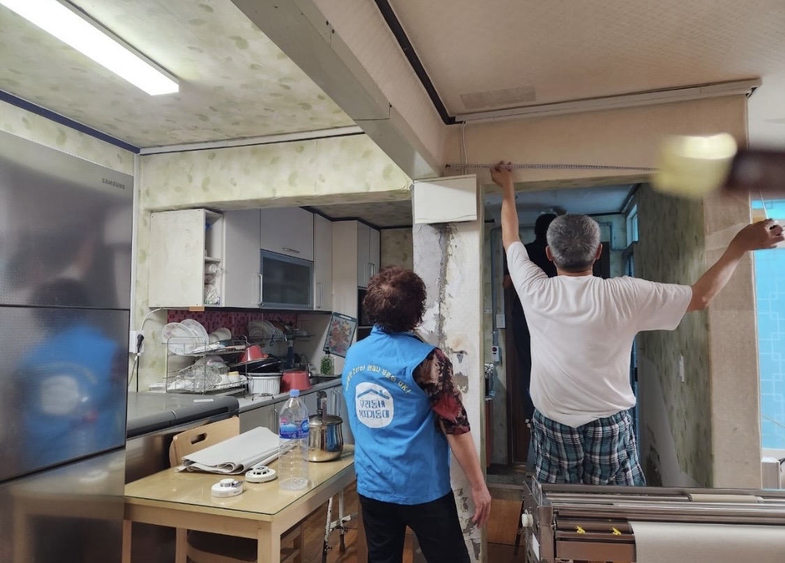 용당2동 우리동네 복지기동대원들이 어르신의 어려운 사정을 듣고 도배 지원에 바로 나섰습니다.