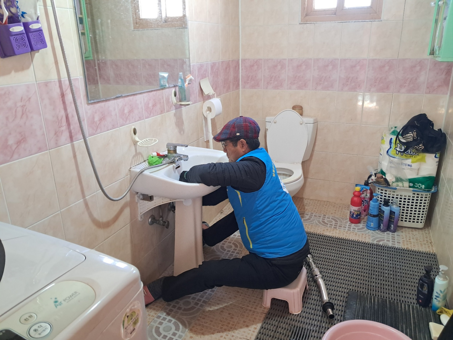 세면대 배수구 수리와 욕실,주방,거실 청소와 벽걸이 선풍기 청소 후 재설치 해드렸습니다