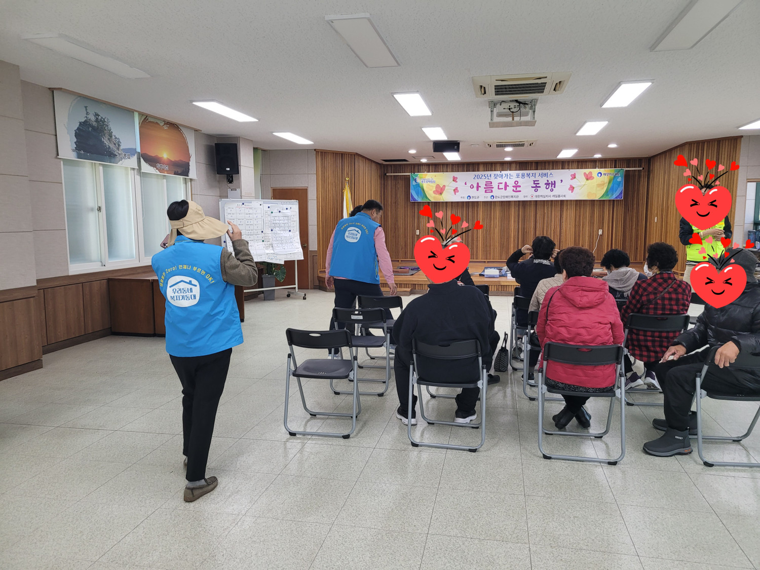 * 출장내용 : 완도군장애인복지관에서 우리면을 방문하여 '찾아가는 포용복지 서비스'를 운영하였으며 우리면 장애인들이 풍성한 혜택을 누릴수 있도록 홍보 및 활동함.