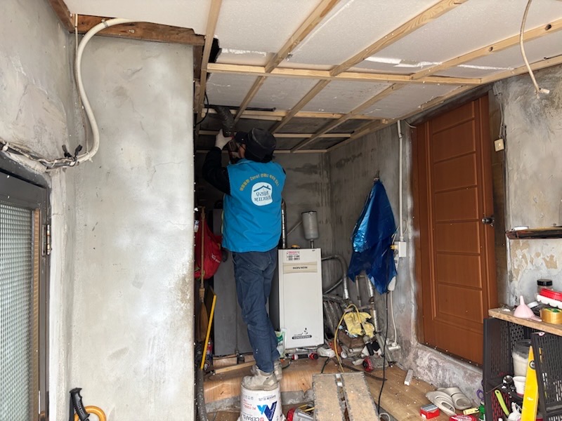 마을 이장님의 제보로 발굴된 독거노인 가구는 노후된 주택 구조로 인해 외풍이 심하고 겨울철 실내가 매우 추운 위기상황에 놓여 있었습니다. 특히 중천장 손상과 화장실 창문 틈새로 찬바람이 들어와 건강 악화가 우려되는 상황이었습니다. 이에 중천장 보수 공사를 진행하고 화장실 창문과 방충망을 교체하는 방식으로 지원해 드렸습니다. 그 결과 외풍이 크게 줄어들어 실내 환경이 한층 따뜻하고 쾌적해졌으며, 어르신께서 안심하고 겨울을 보내실 수 있는 주거 여건이 마련되었습니다.