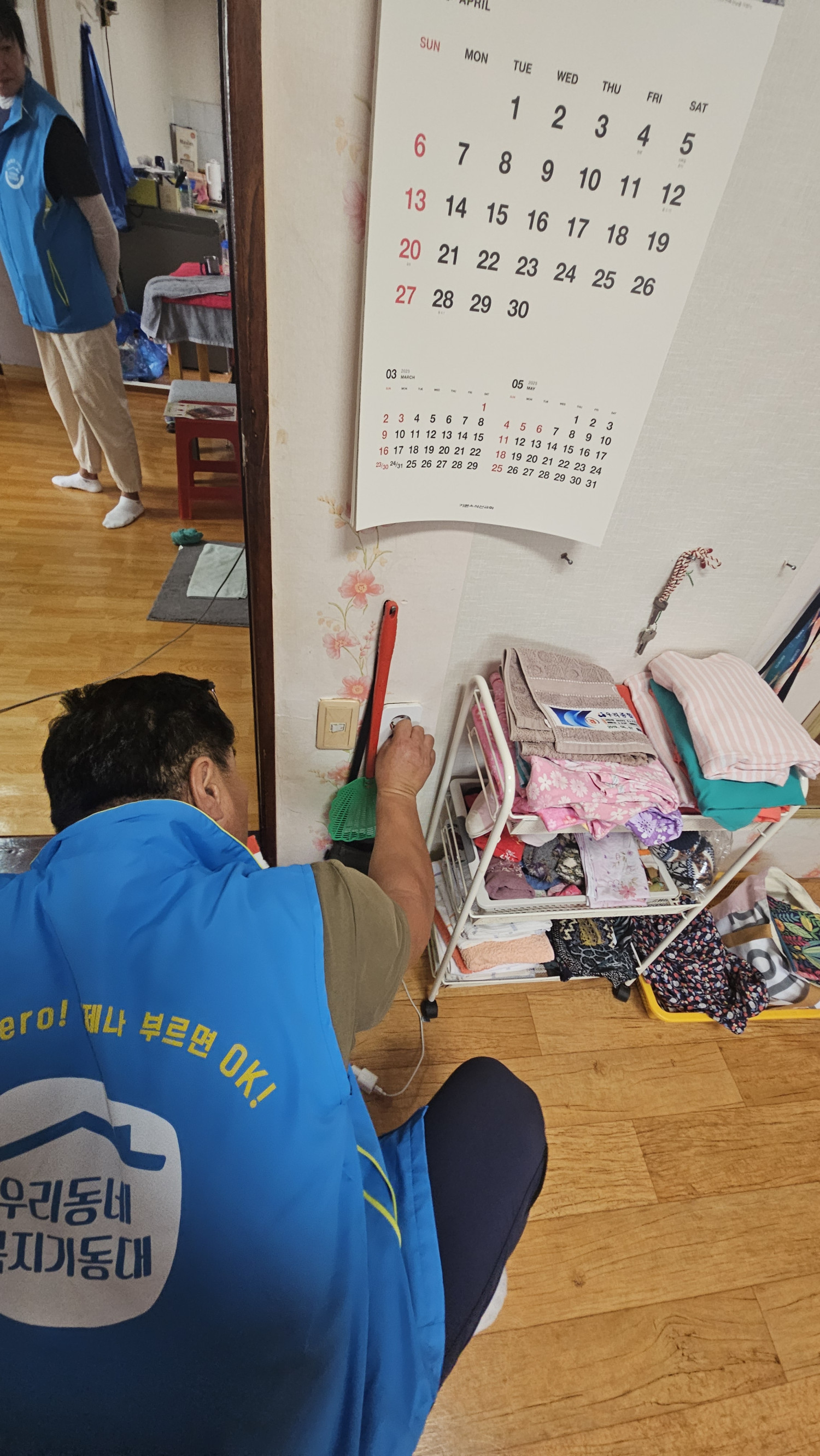 - 내용: 노후전선정리 및 고용량 멀티탭 교체, 대형 가전제품 옮기기, 소화패치 부착 등