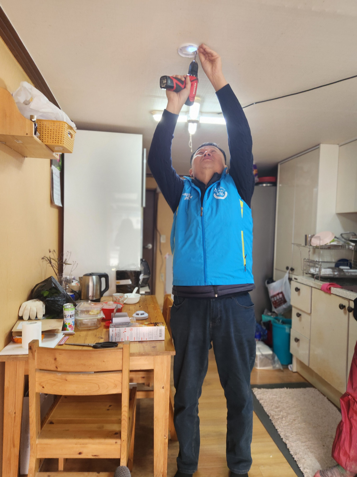 화재감지기설치, 소화기, 자동소화멀티탭, 미끄럼방지매트,산소마스크, 홍보물품(방한장갑, 넥워머)전달