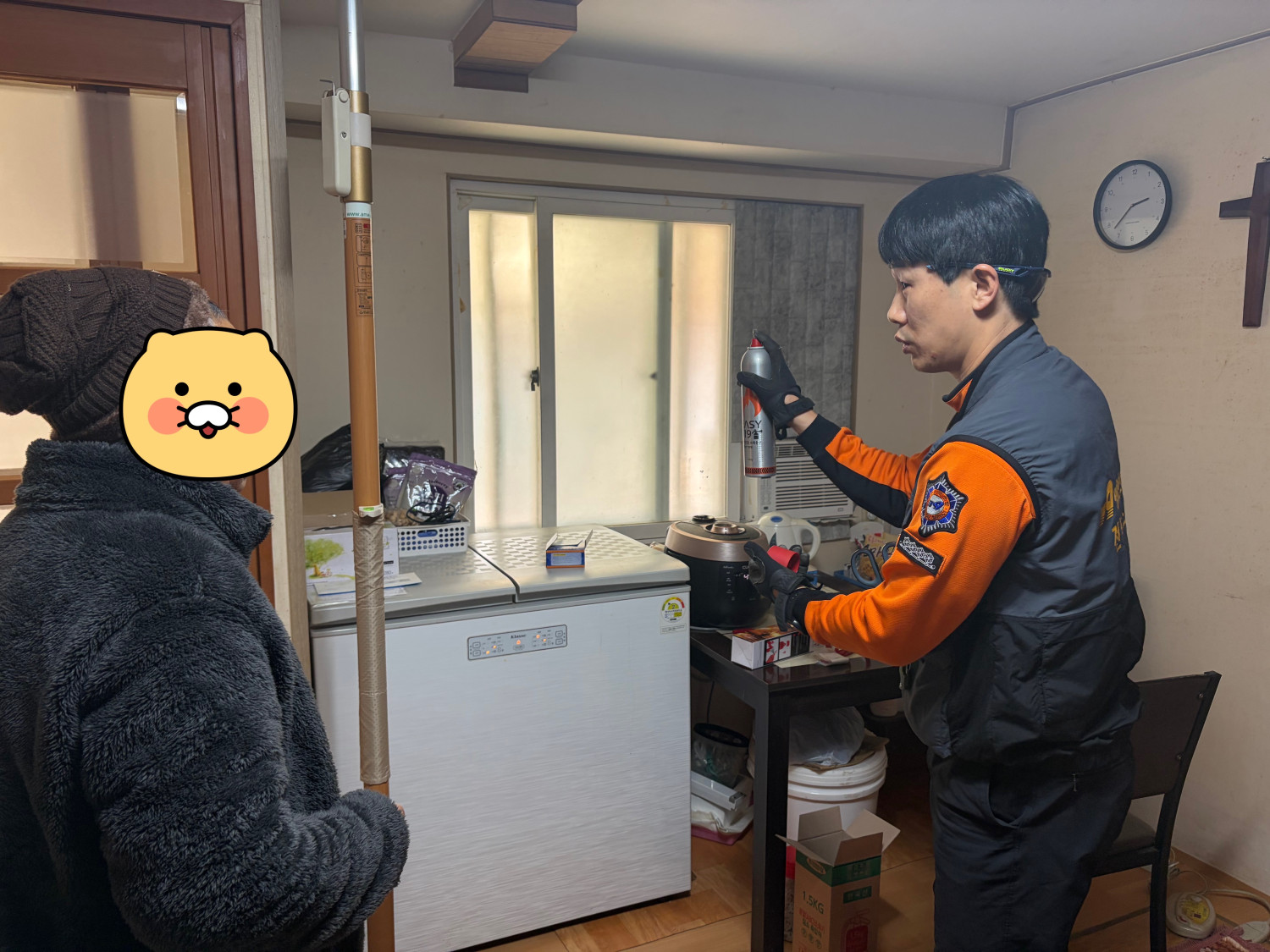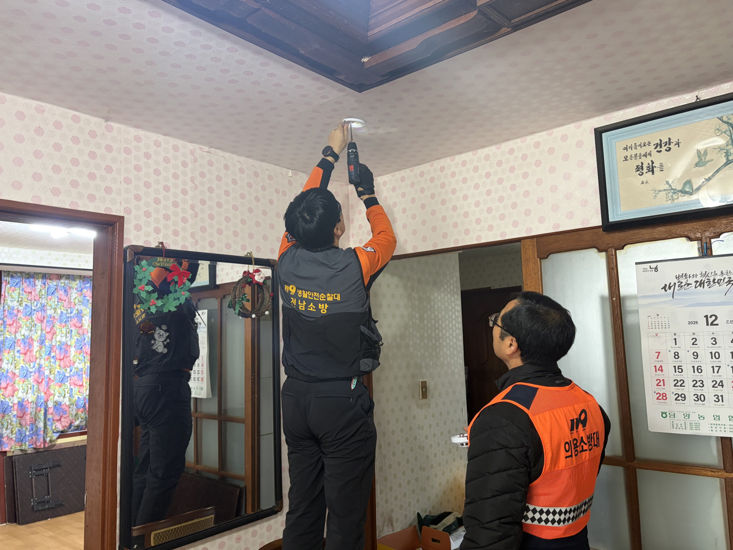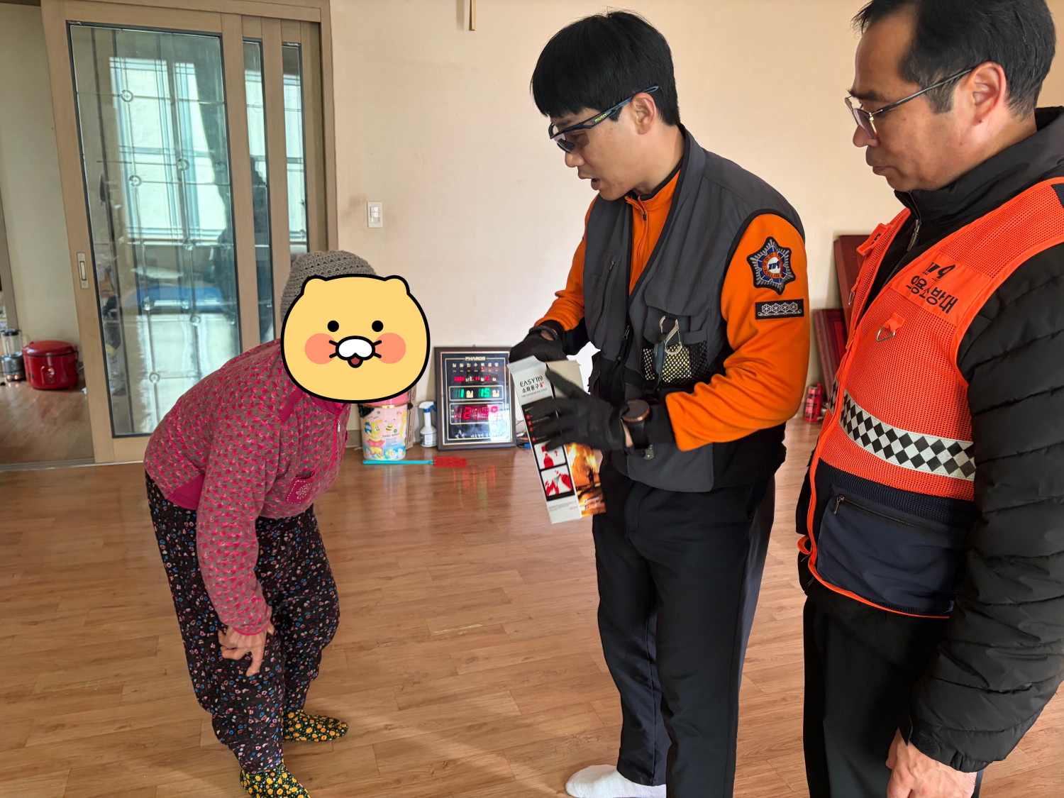 🩵내용: 119 생활안전순찰대와 합동으로 화재발생 취약가구를 방문하여 전반적인 생활안전 및 화재위험 요소를 사전에 점검하였습니다. 점검과 함께 연기감지기, 스프레이 소화기, 산소발생마스크, 미끄럼방지매트 등으로 구성된 안전꾸러미를 제공하여 위기가구의 기본 안전장비를 확충하였습니다. 아울러 각 가정에 설치된 화재감지기와 소화기의 작동 여부를 확인하고 사용방법을 안내하는 등 화재예방교육을 병행하여 주민들의 안전의식을 높였습니다.