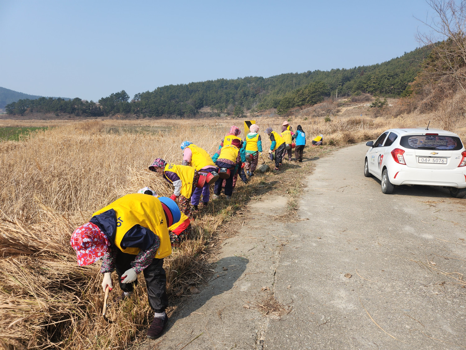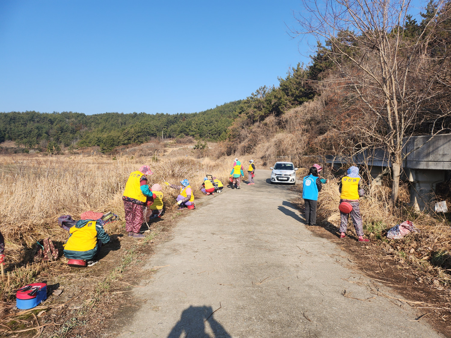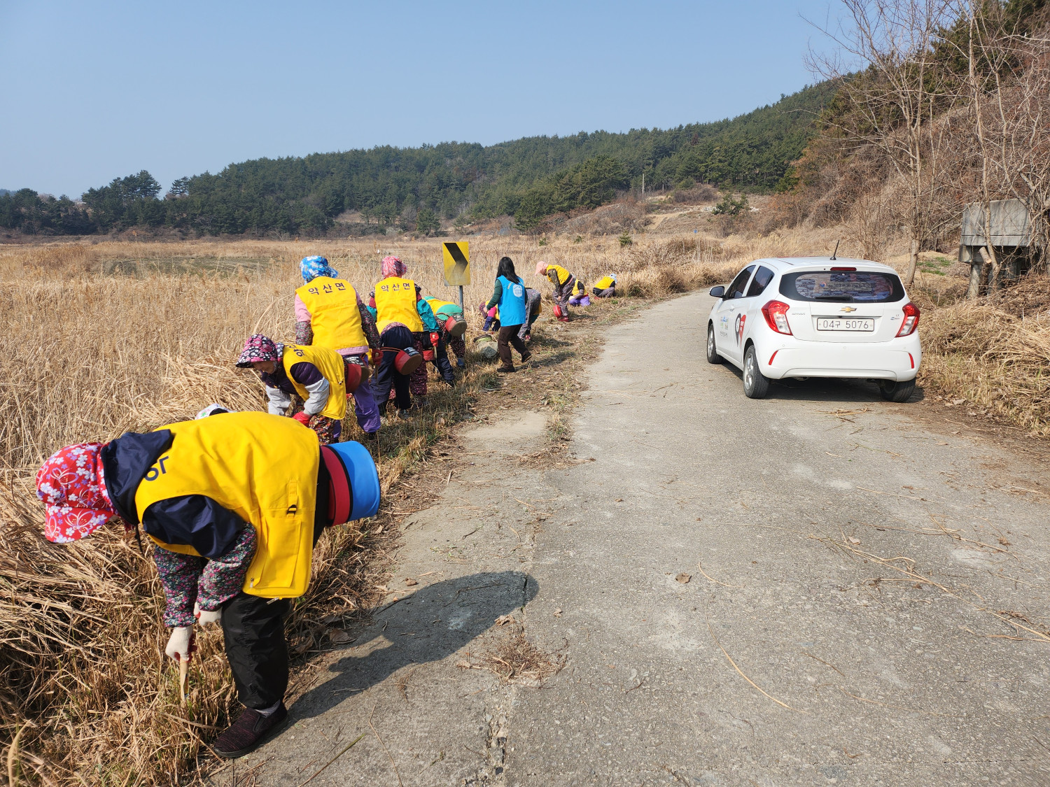 3. 내용 : 약산면 관산 마을 간척지 도로변 풀베기 현장 안전 점검을 했습니다.