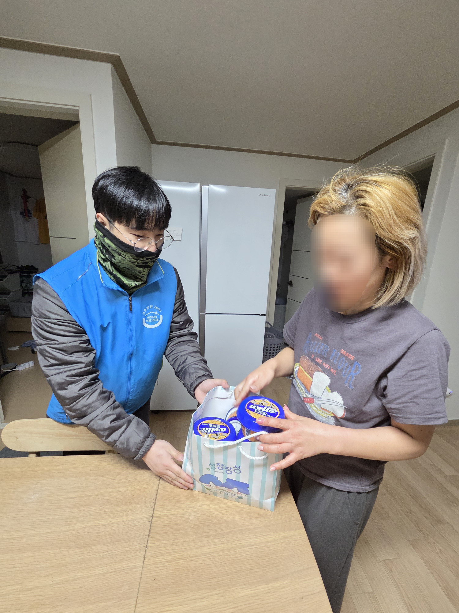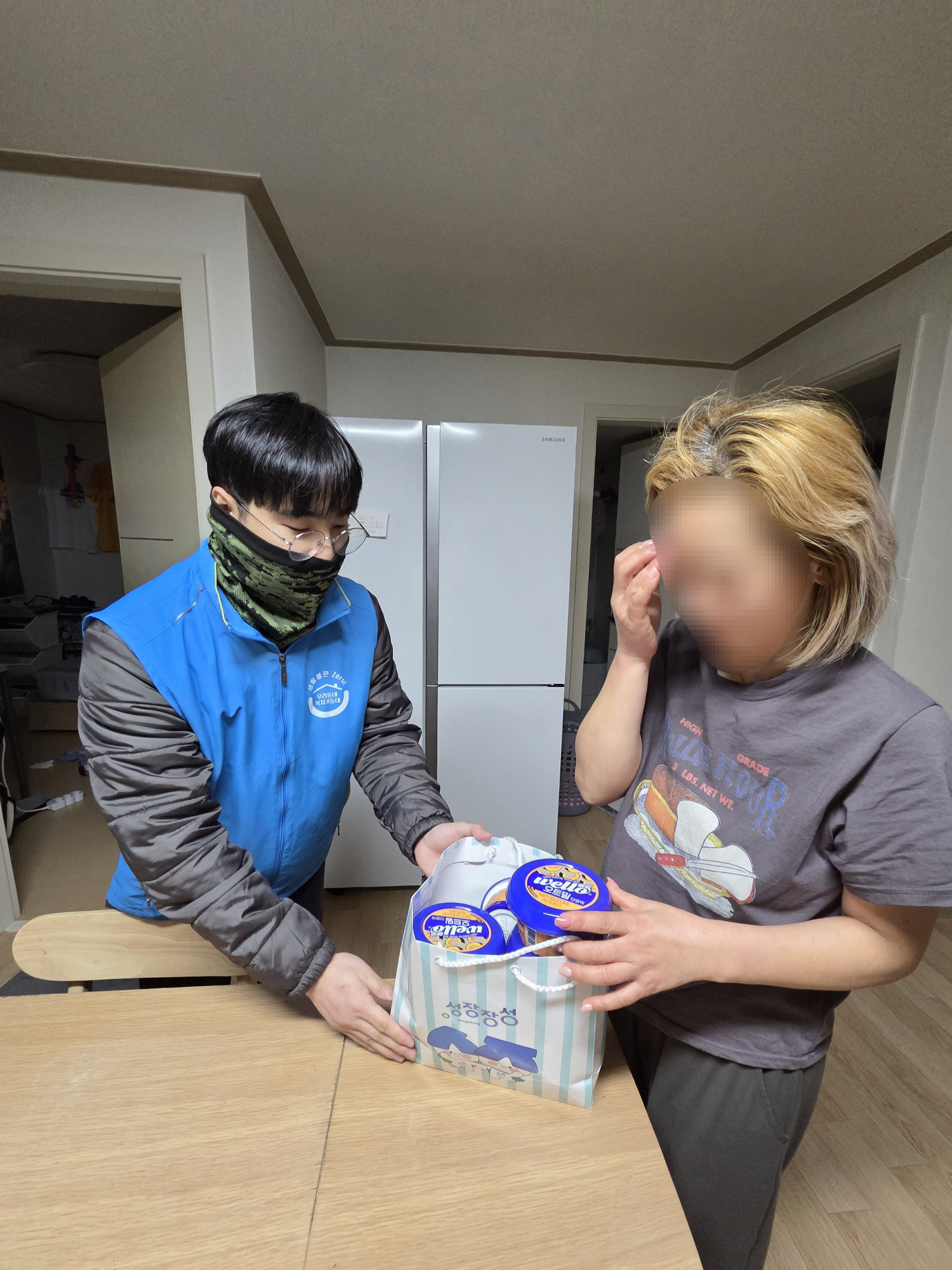 ※일시 : 2026년 1월 5일 ※대상 : 한부모가정 박*연 씨 가구 ※내용 : 오늘은 새해를 맞아 통합사례관리사 선생님과 대상자 분들의 가구에 방문하여 후원물품을 전달하고 근황을 묻기 위해 우리동네복지기동대가 함께 출동했습니다. 박*연 씨 댁에 방문하여 근황과 생활에 있어 힘든 부분이 있는지, 아드님의 진로에 대한 사항과 필요한 서비스가 없는지 여쭈며 대화를 나누었습니다. 이후 후원물품을 전달하며 조리 방법을 간단하게 설명해드리니 기뻐하시며 미소를 지어주셨습니다. 앞으로도 열심히 활동하는 우리동네복지기동대가 되겠습니다!