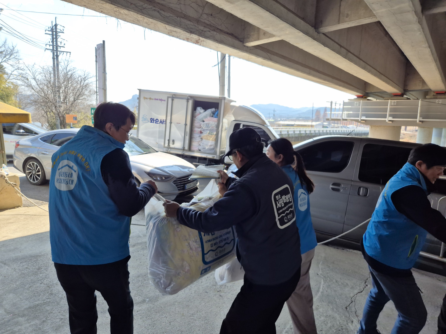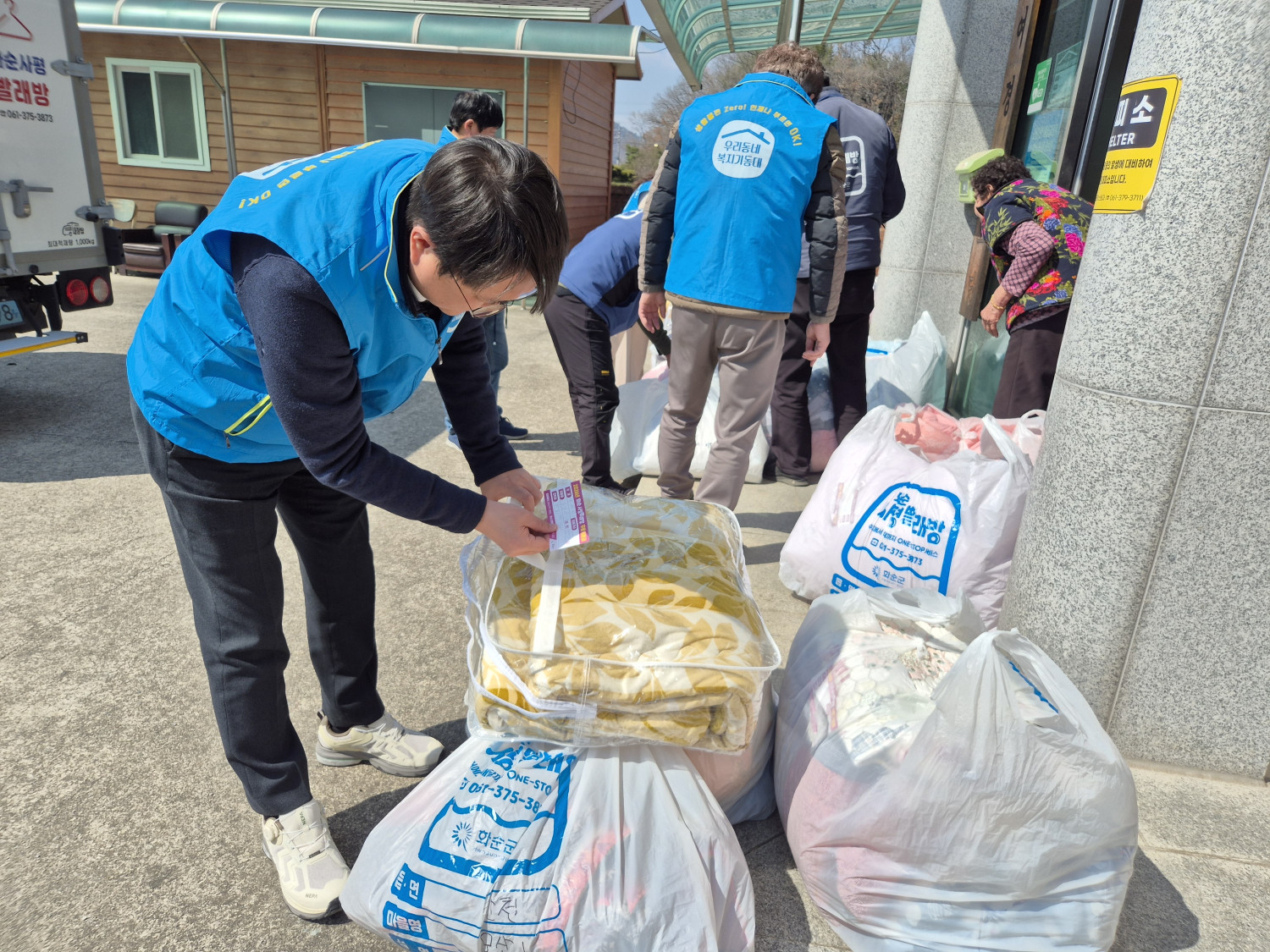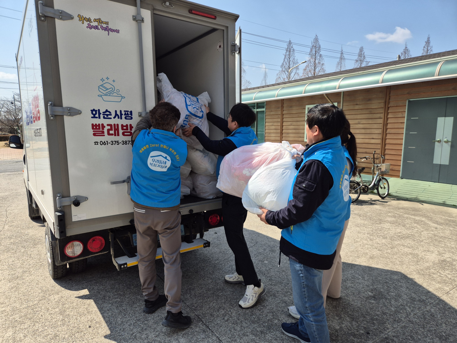 오늘은 사평빨래방 이불 수거를 지원하기 위해 복지기동대가 출동하였습니다!