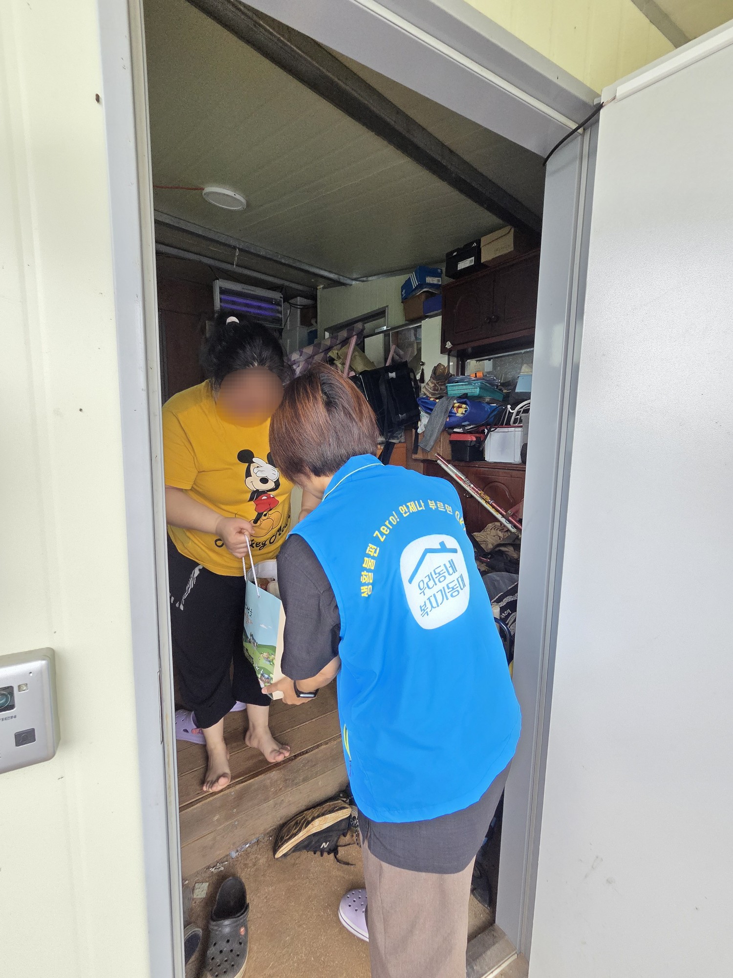 사례 발굴로 저소득가구에 해당하는 김○○ 씨 사례를 발견했고, 생활에 생필품이 부족한 상황임을 확인하고 이를 해결하기 위해 우리동네복지기동대가 샴푸와 세면용품, 세제 등의 생필품을 전달하기 위해 출동했습니다.