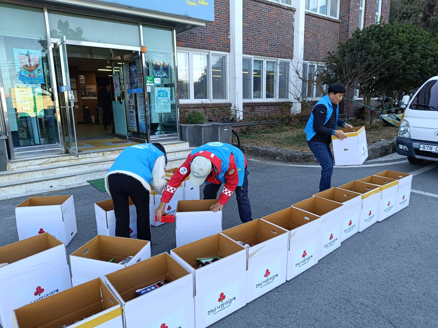 활동내용:복지기동대가 이웃들의 따뜻한 겨울을 위해 기탁받은 식품꾸러미를 취약가구에 전달하며 복지의 온기를 전함.