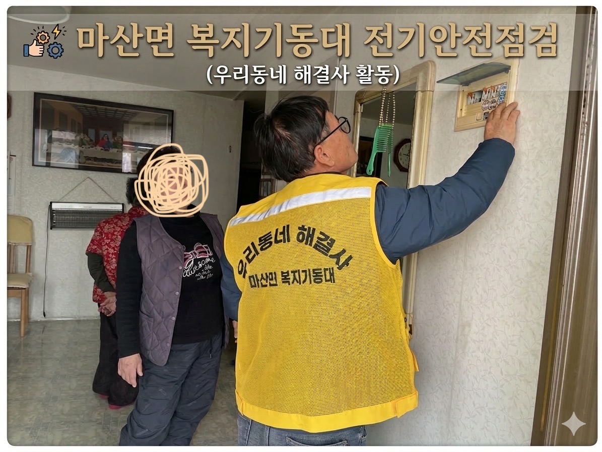 마산면 복지기동대는 저소득 독거어르신댁에 방문하여 전기안전점검을 실시하였습니다