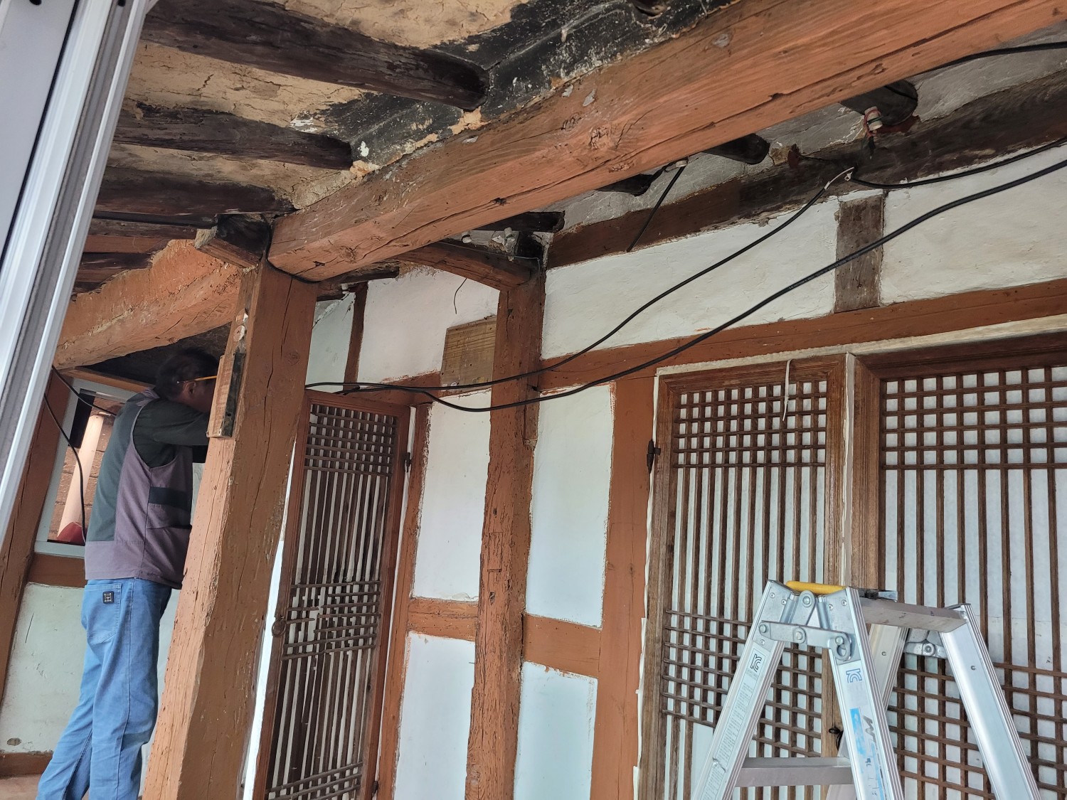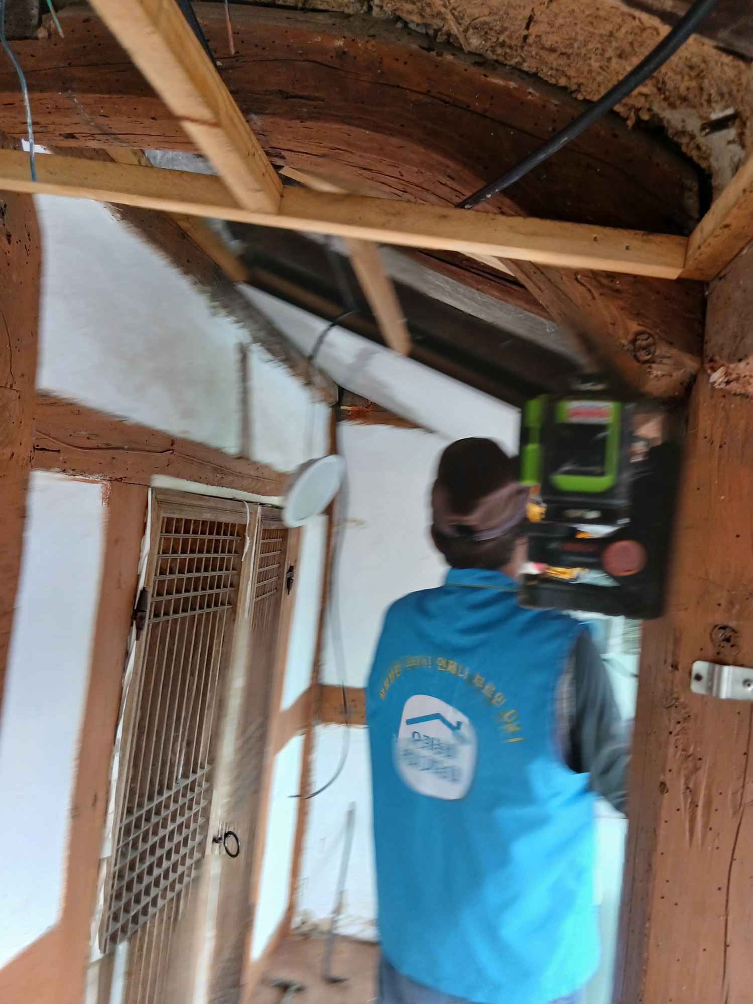 * 출장내용 : 주택 노후화로 천장 부분에 균열이 발생하여 긴급으로 보강 공사를 완료함.