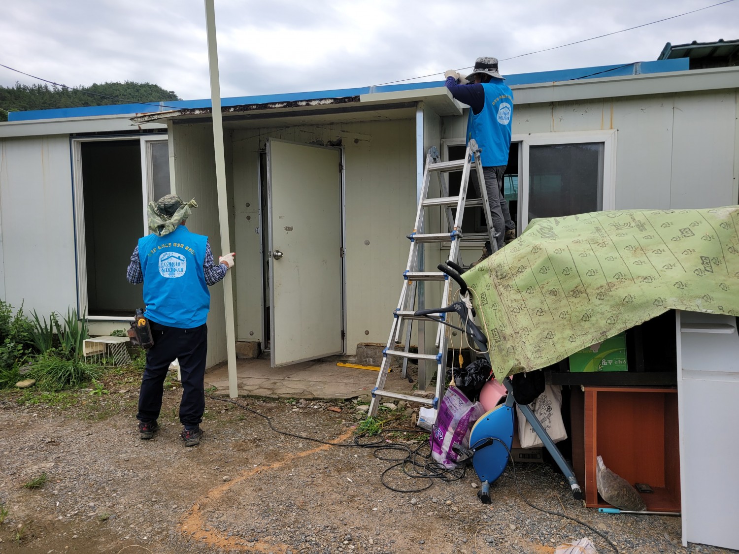 판넬로 지어진 집에서 거주하며 지붕에서 물이 새어 최근 지붕수리를 완료 하였으며 거실이 곰팡이가 많아서 복지기동대로 의뢰하였습니다.