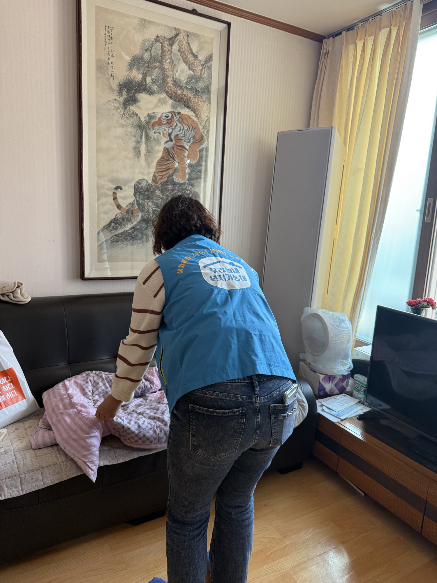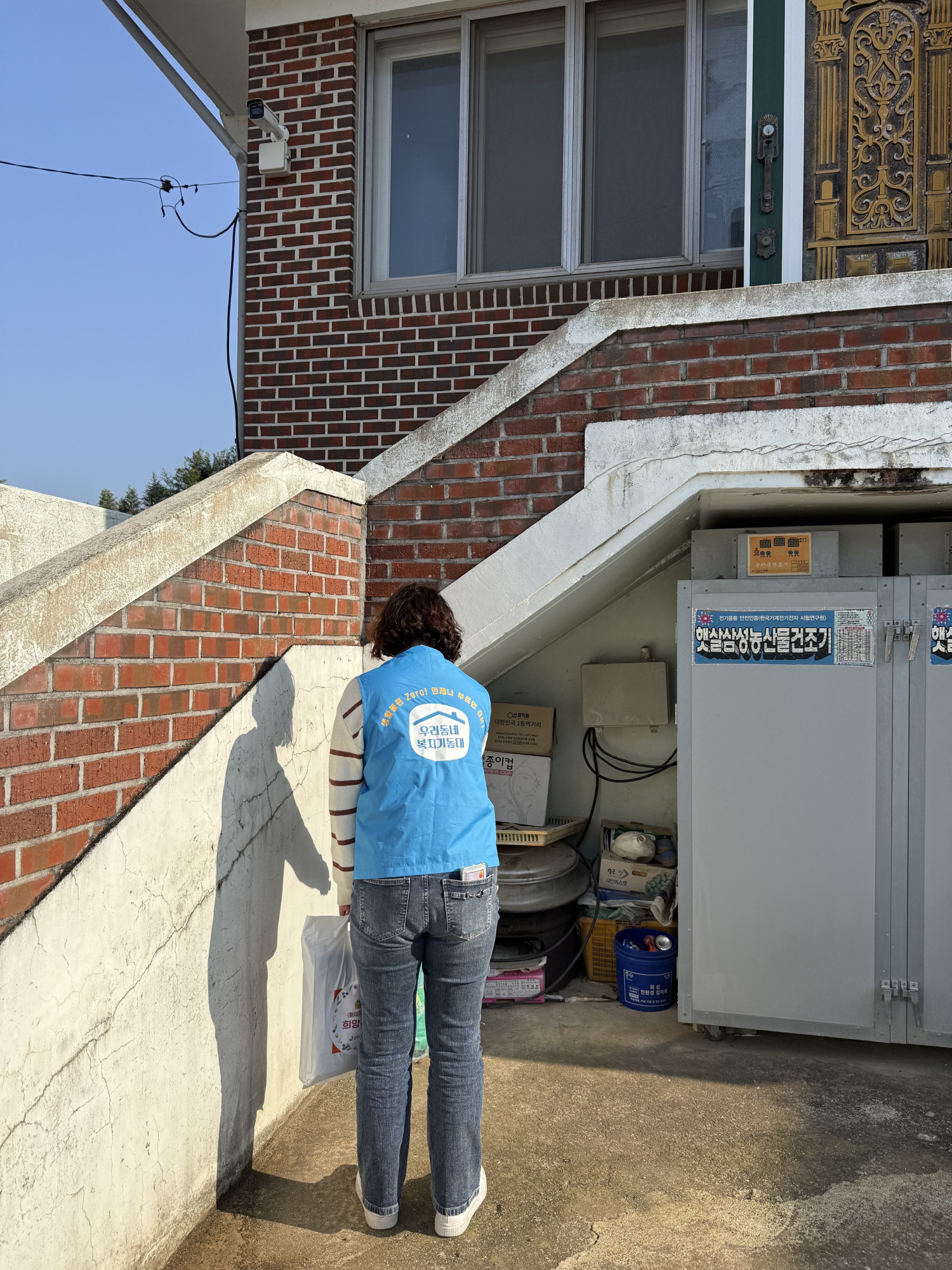 *상황: 독거 노인의 안부를 살피고 생필품 전달 시행함. 동절기 난방 사용 관련 안전수칙을 전달하고 점검함.