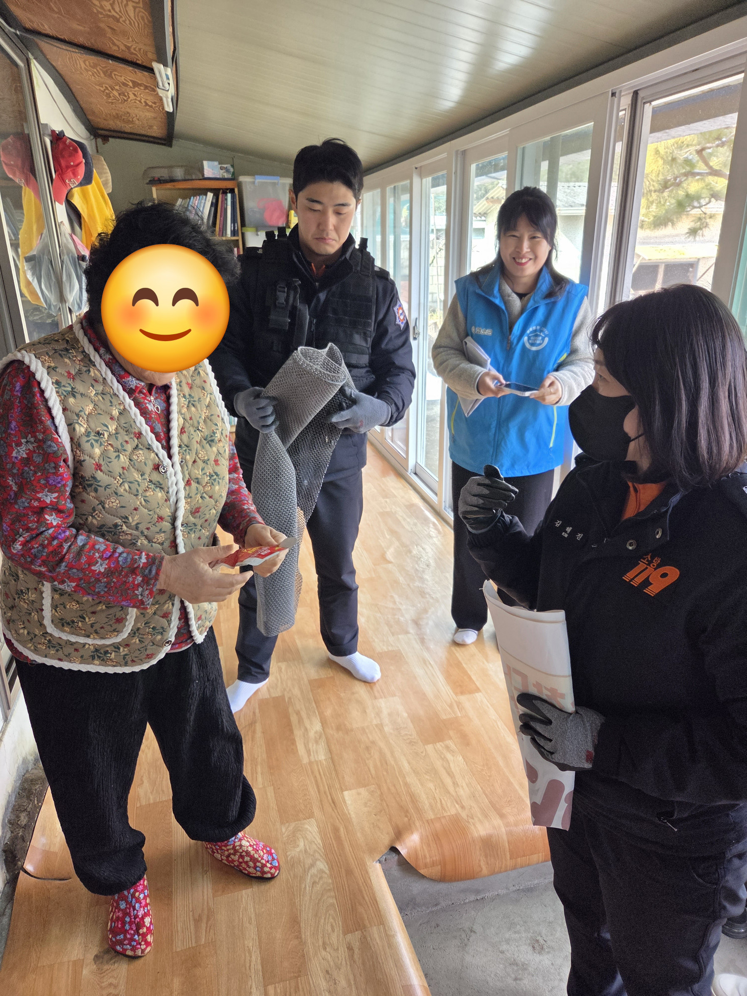 춘양면복지기동대와 화순119생활안전순찰대가 협업하여 동절기 위기가구 10세대에게 소화기, 화재감지기, 산소 마스크, 미끄럼방지매트를 전달하고 왔습니다.
