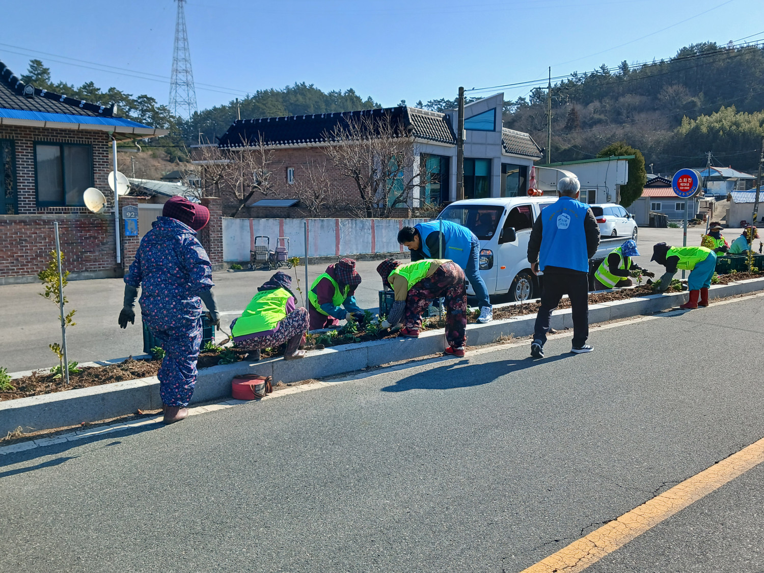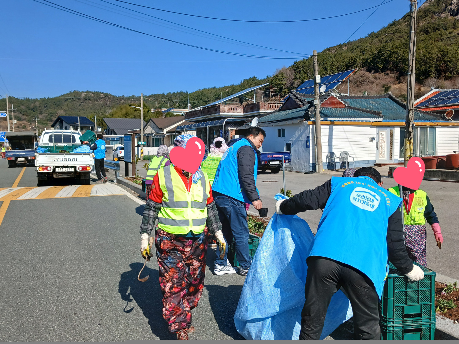 * 출장내용 : 노인일자리 어르신들과 협력하여 주요 도로변 및 마을 화단에 봄꽃 식재 작업을 완료.