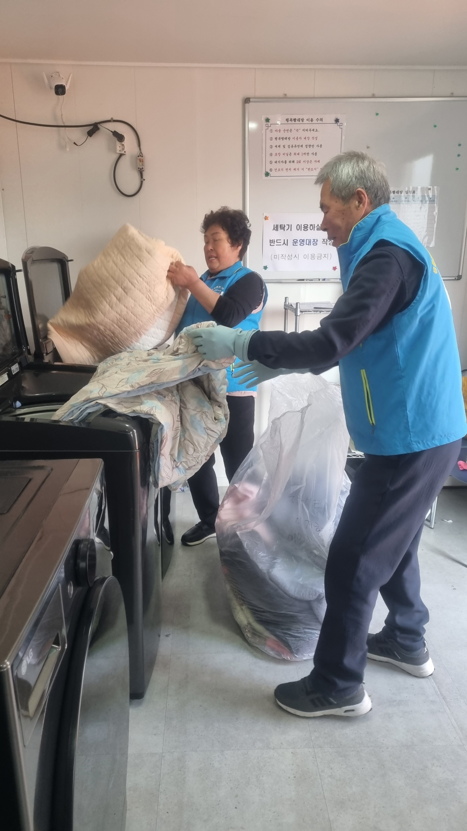 구슬땀 흘리며 수거한 빨래들을 수거하여 깨끗하게 세탁중입니다.