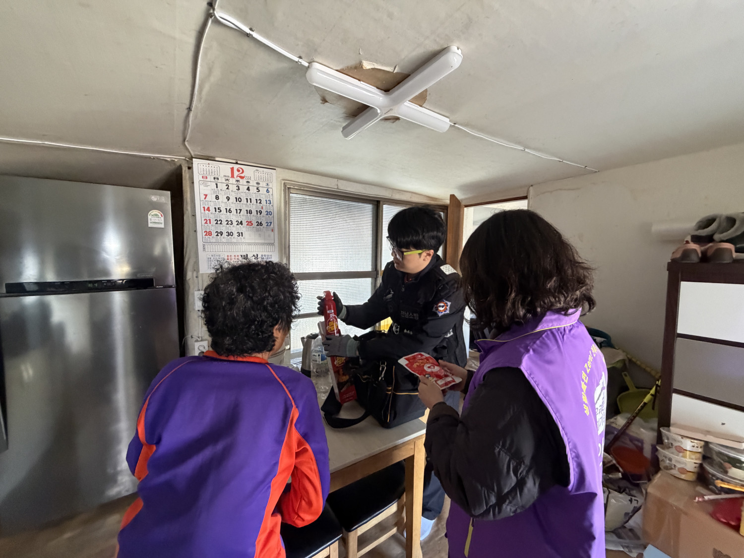 팔금면 화재취약가구 15가구 복지기동대원들과 119생활안전 순찰대 각 가정에 방문하여 안전꾸러미 전달