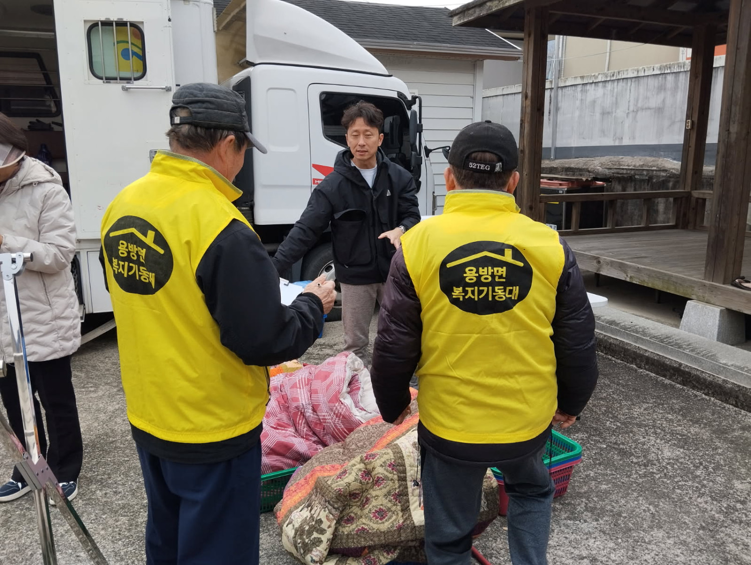 용방면 우리동네 복지기동대와 함께하는 전남행복버스 및 이동세탁차 행사 자원봉사 현장입니다.