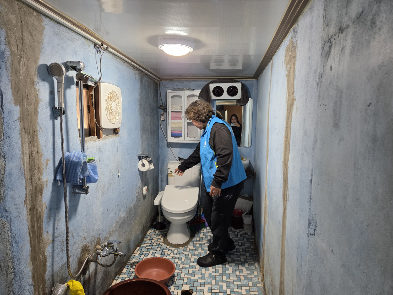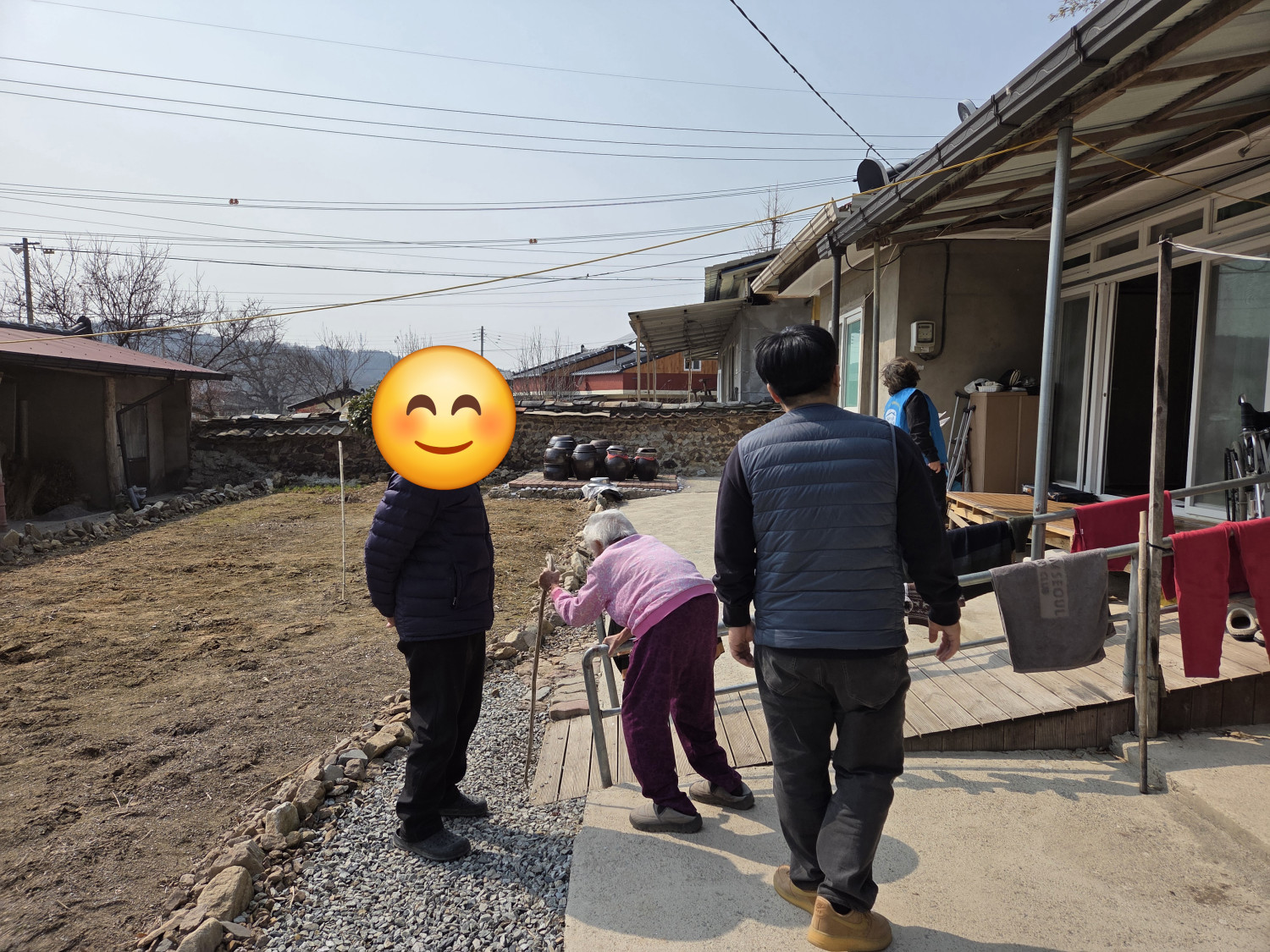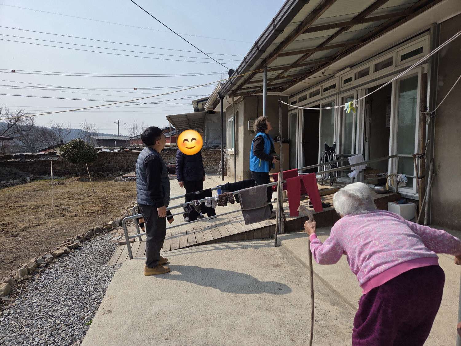 대상자는 100세의 고령으로 보행에 어려움을 겪고 있습니다. 내부에 화장실 및 이동하는 구간에 안전시설이 설치되지 않아 낙상 위험이 높은 상황이며, 주택 지붕 강판 노후로 우천 시 빗물이 유입되고 있습니다. 이런 대상자의 불편사항을 듣고 복지기동대에서는 지원을 검토하였습니다.