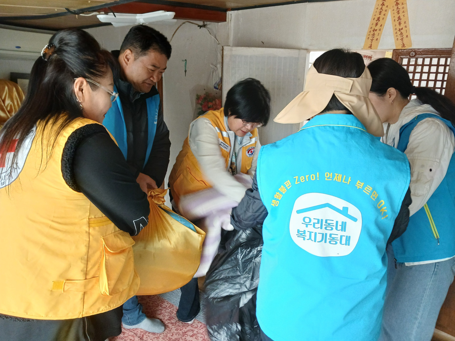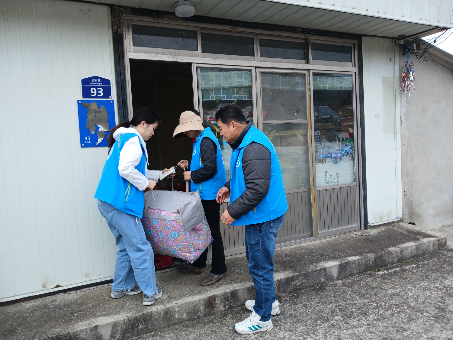 * 출장내용 : 금당면 지역사회보장협의체, 적십자 금당봉사회 등의 봉사자가 참여해 거동불편 노인가구 등 6가구를 방문해 이불과 세탁물을 수거하고 세탁, 건조 후 각 가정에 직접 전달함.