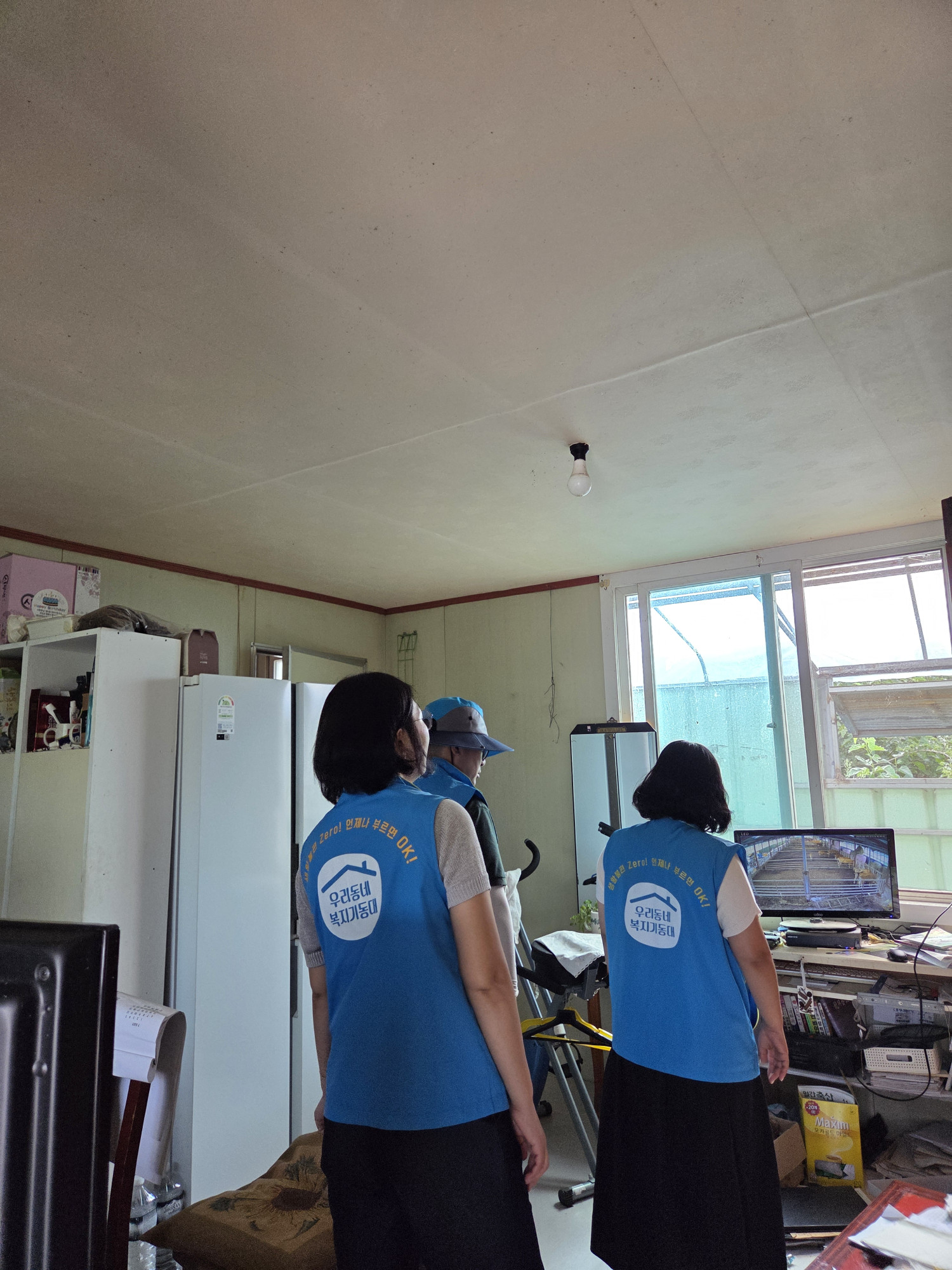 지붕에 비가새어 지붕수리를 하였는데 그동안 빗물로 인해 장판에 곰팡이가 심하였고 씽크대 및 화장실 등 취약한 부분을 확인하고 서비스연계도 논의하였습니다.