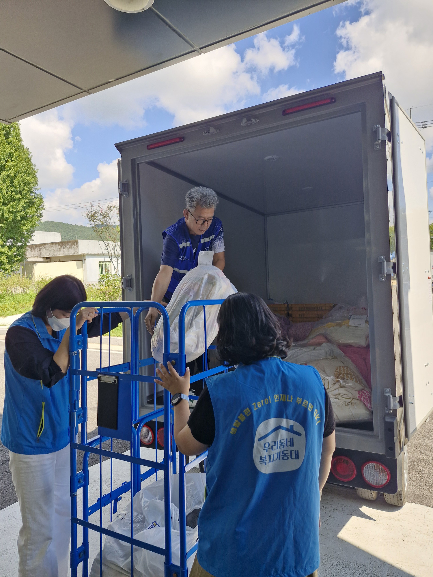 우리동네 복지기동대가 사평빨래방에서 이불을 수거하고 깨끗하게 세탁하여 다시 돌려드리는 봉사활동을 진행했습니다.