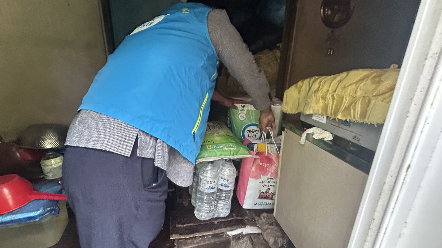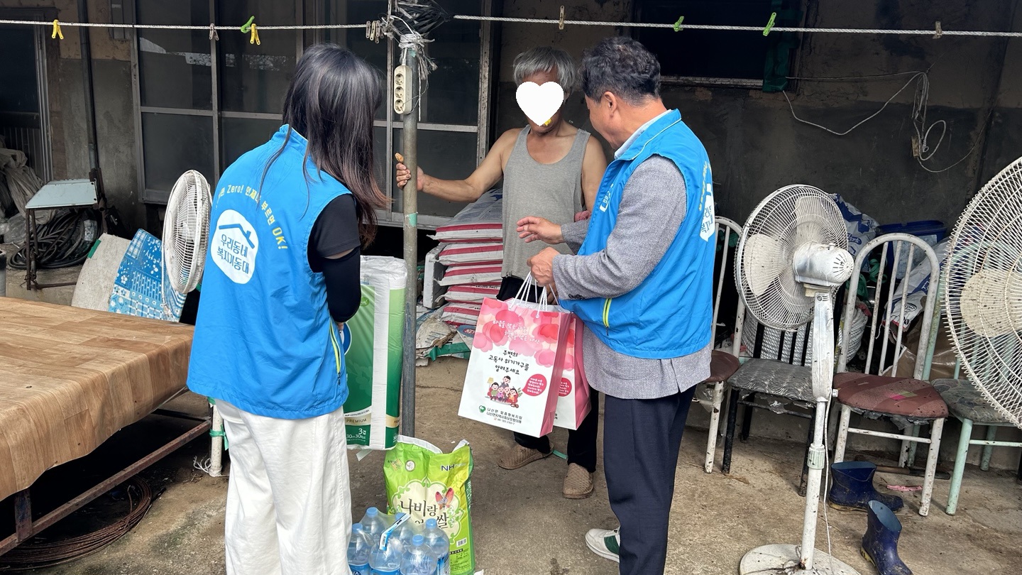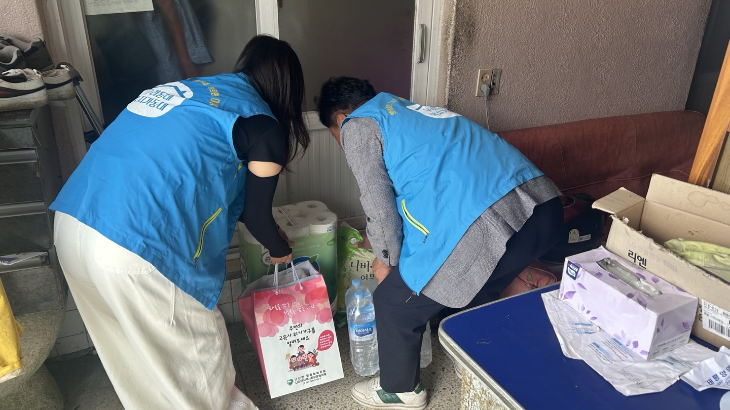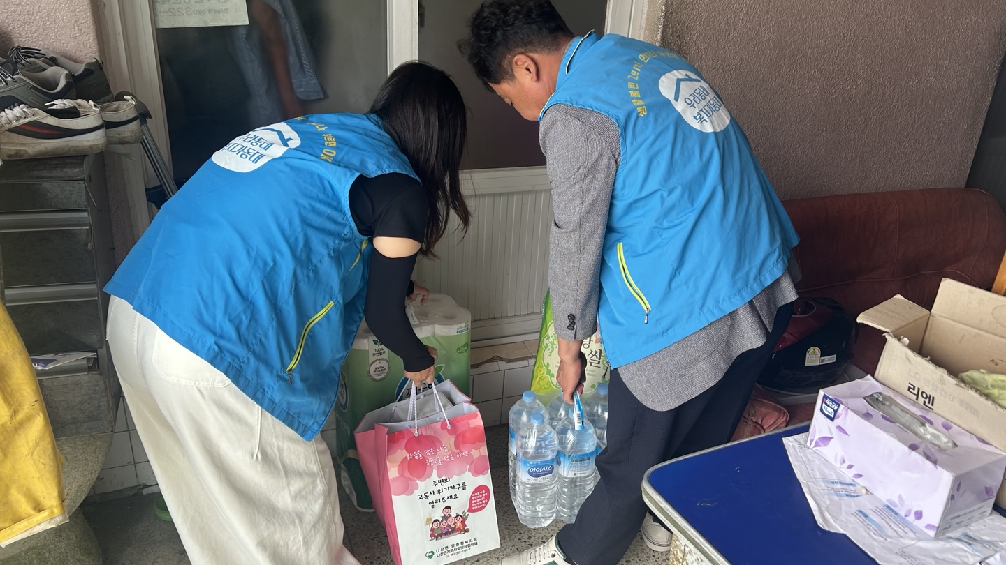 나산면 우리동네 복지기동대는 지역 내 고독사 예방을 위해 생수, 화장지, 백미, 쌀국수 등 생필품을 전달하고, 안부를 확인하였습니다.