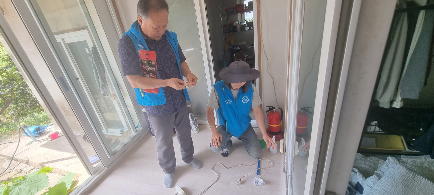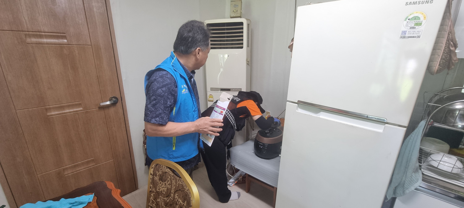 북이면 우리동네는 복지기동대와 119생활안전순찰대 합동으로 노후주택 화재예방으로 20가구에 대해 점검 및 누전차단 고용량 멀티탭으로 교체 및 콘센트에 소화패치 설치 지원함