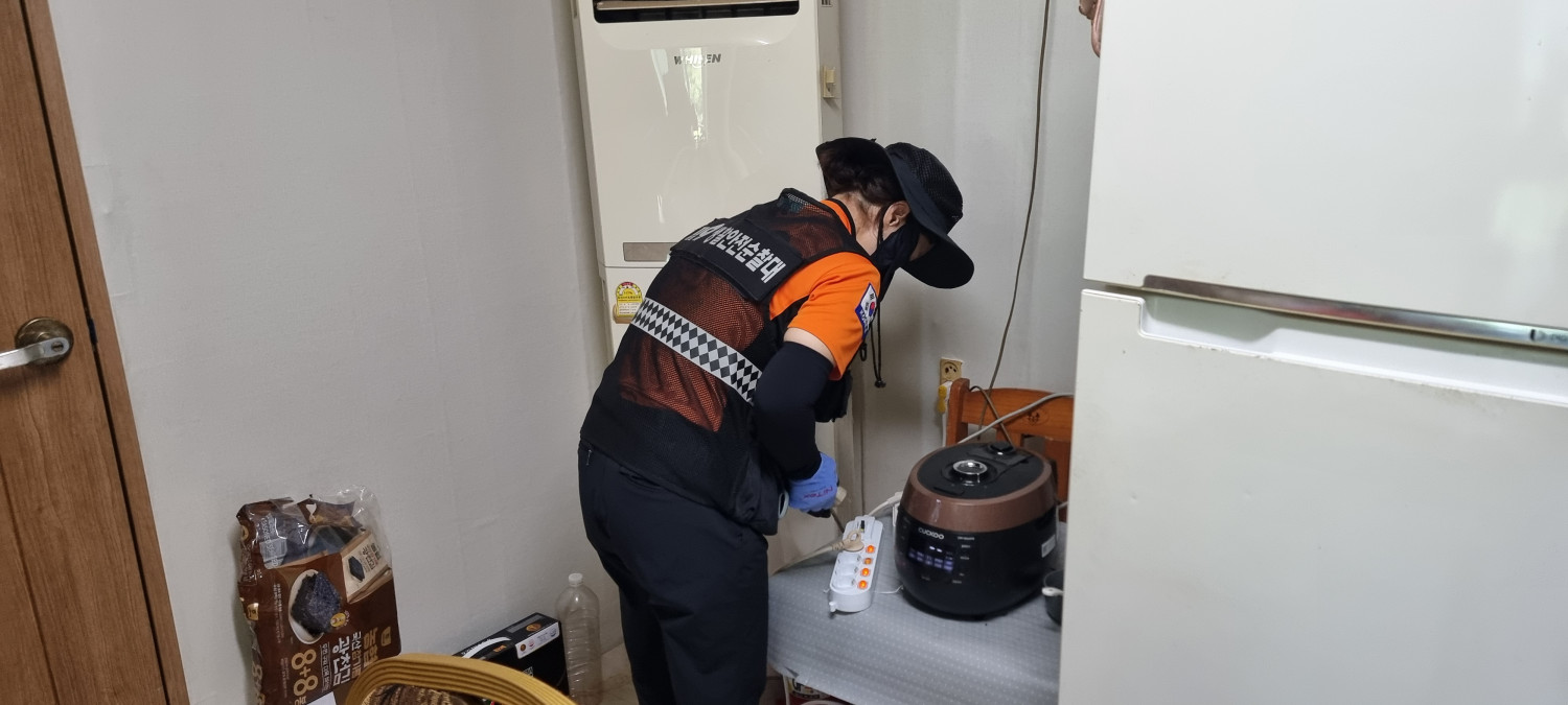 북이면 우리동네는 복지기동대와 119생활안전순찰대 합동으로 노후주택 화재예방으로 20가구에 대해 점검 및 누전차단 고용량 멀티탭으로 교체 및 콘센트에 소화패치 설치 지원함