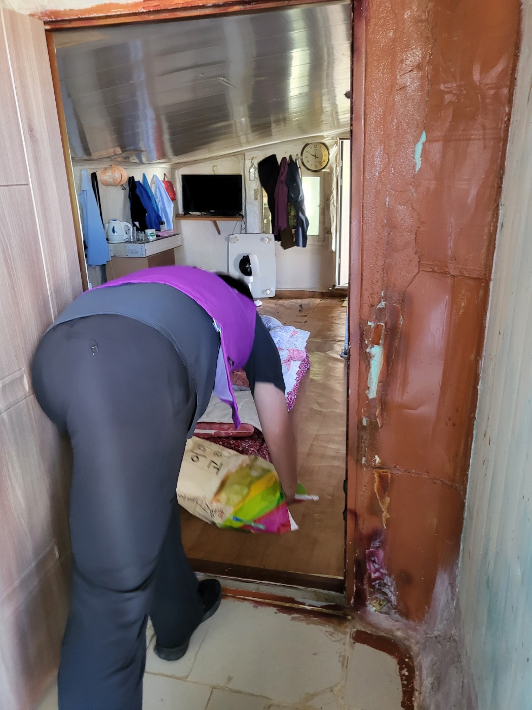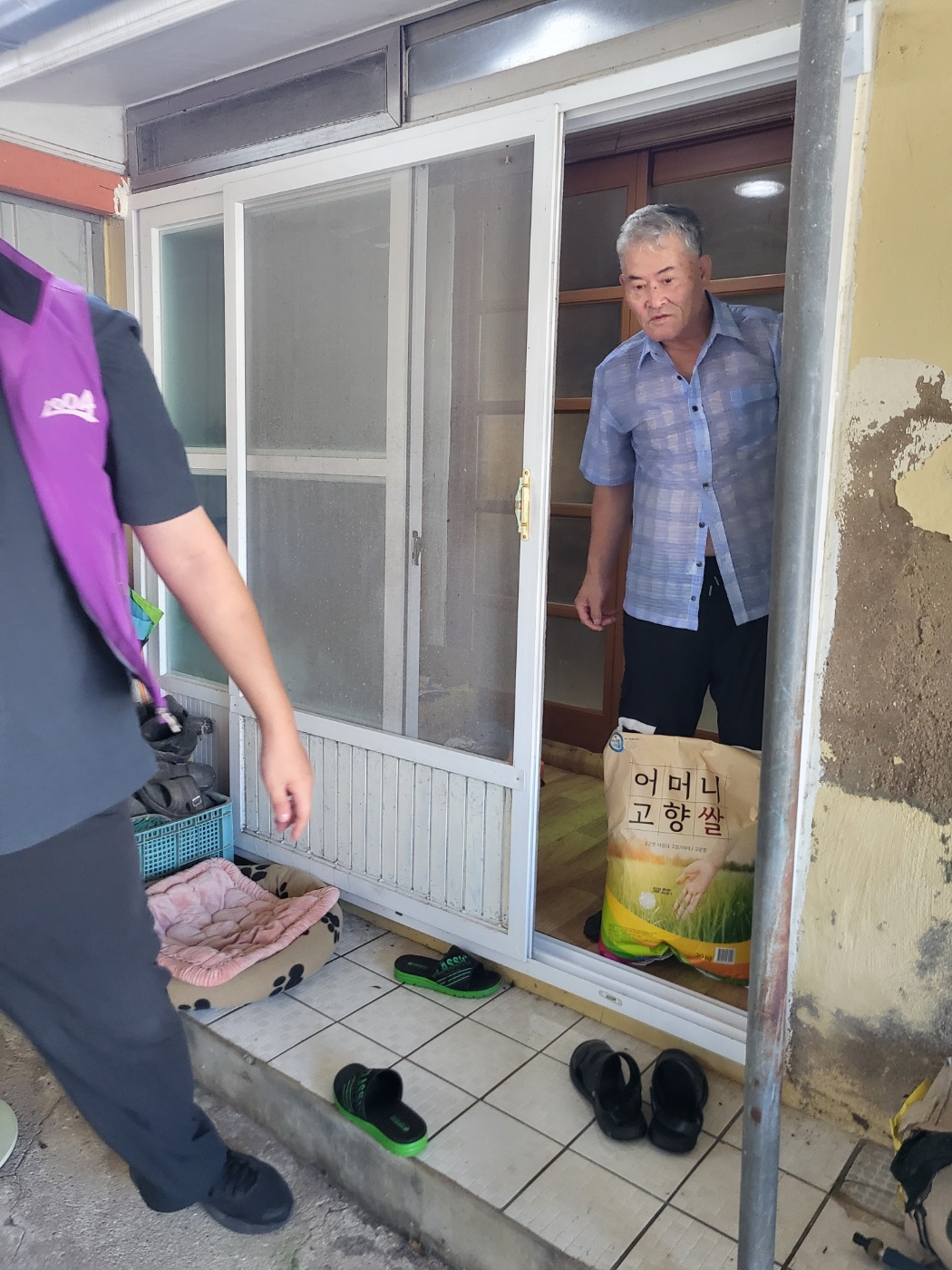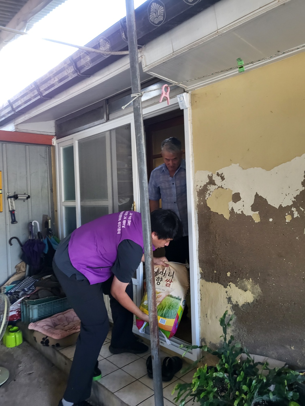쌀을 가지고 방문하여 안부를 확인하고