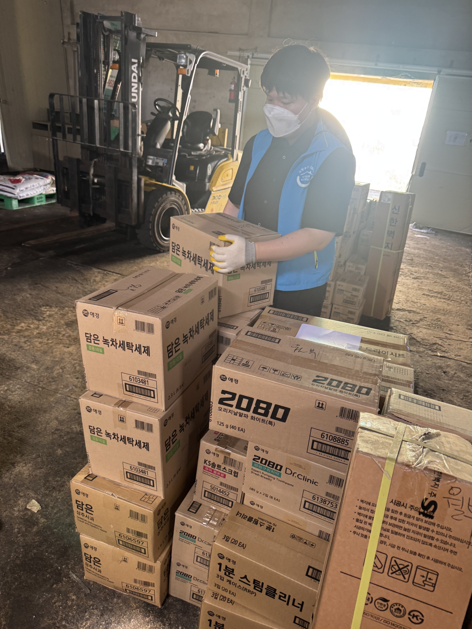 - 내용: 희망을 나누는 사람들 기탁 물품(샴푸, 벽지, 세제 등) 약 800박스를 17개 마을 (노인, 차상위, 수급자, 청장년층, 한부모 등) 대상자에게 배부.