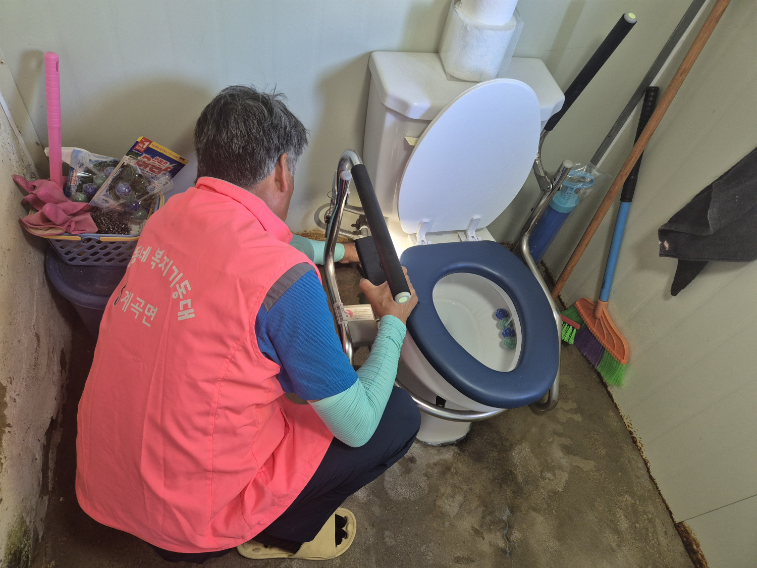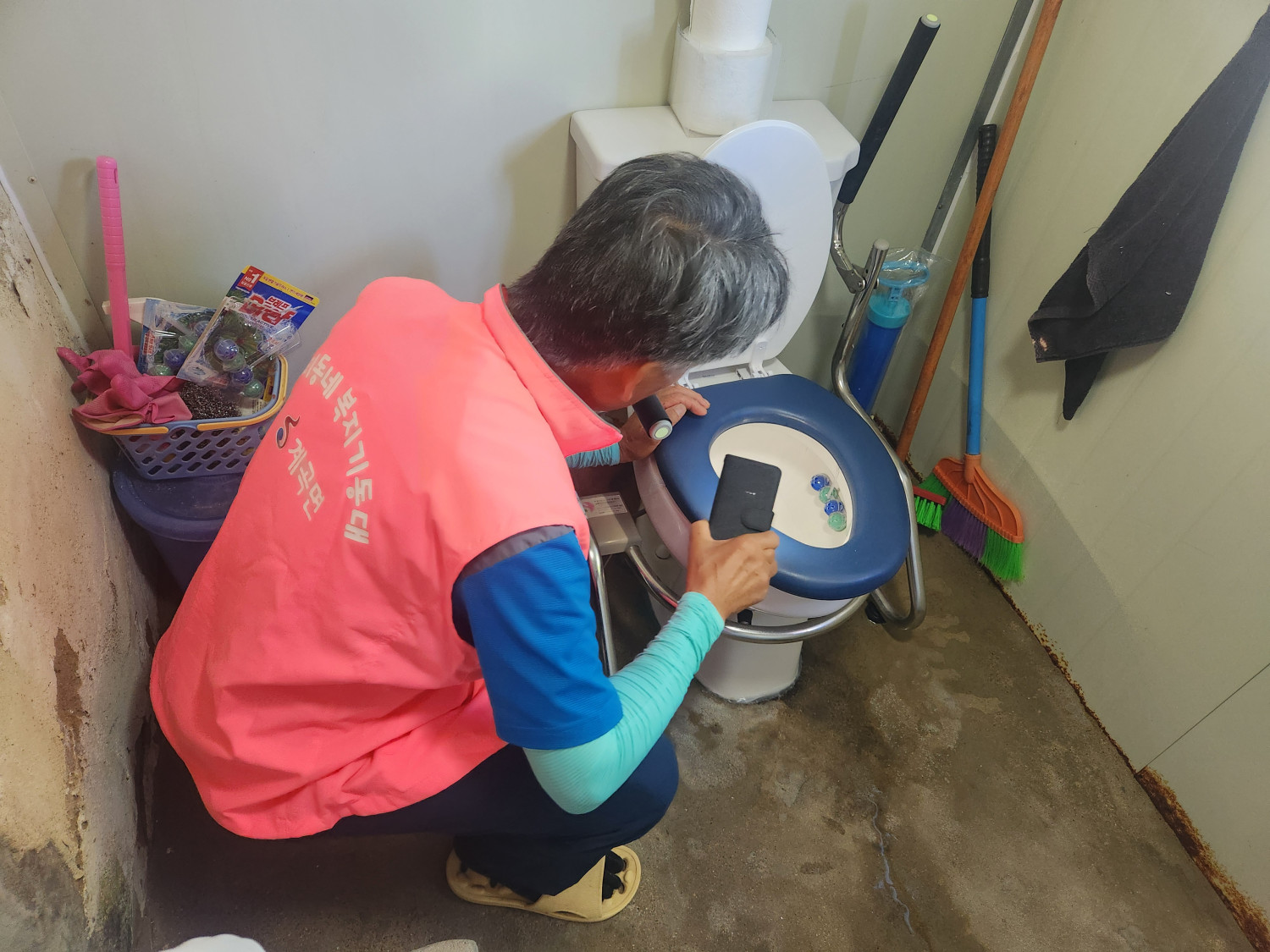 혼자 어렵게 생활하고 계시는 장애인 기초수급자가 사용중인 욕실 바닥 누수가 있다는 요양보호사의 요청이 있어 복지기동대가 현장 출동했습니다.🏃♂️🏃♂️🏃♂️