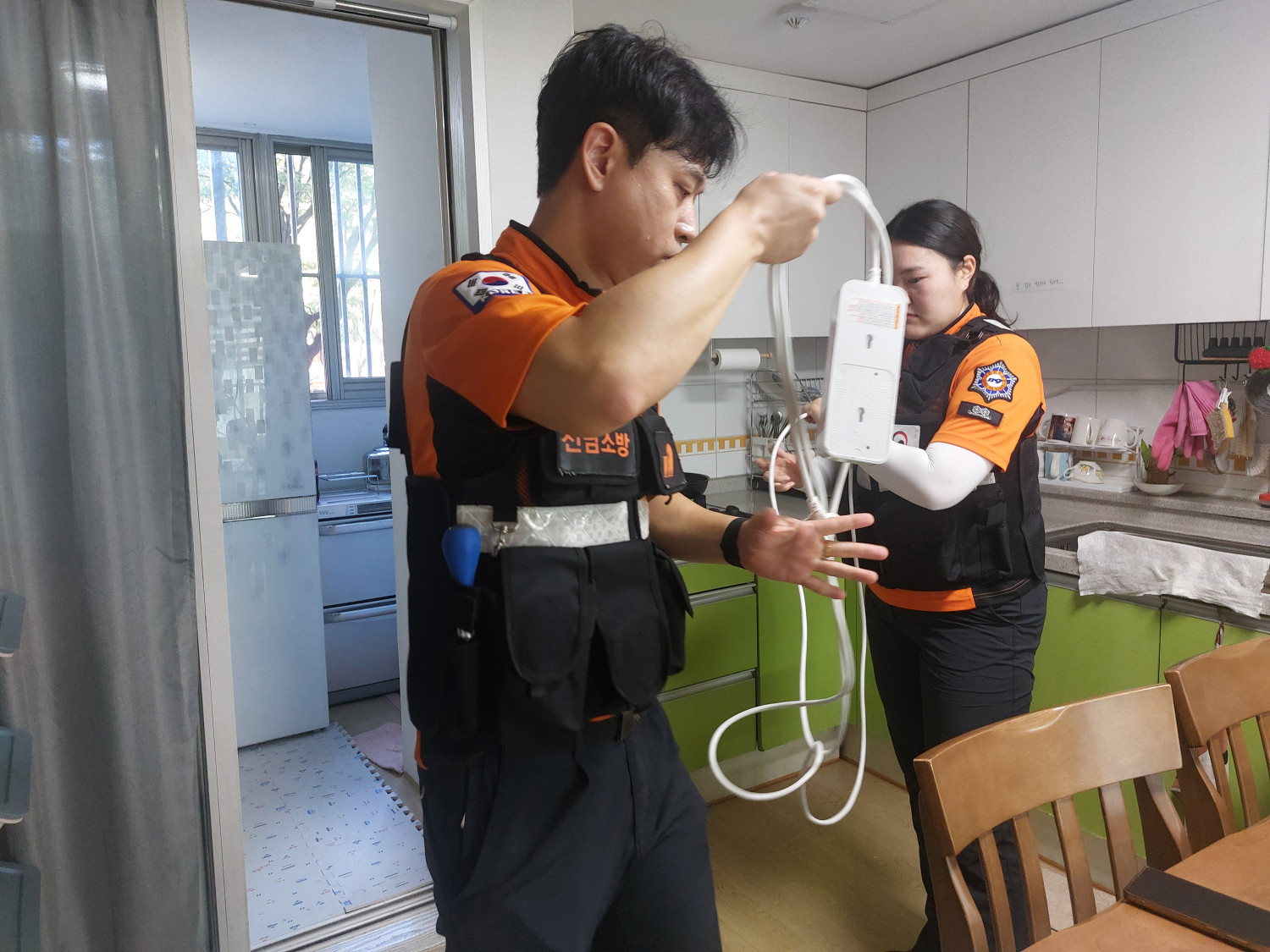 스프링쿨러 미설치노후아파트와 노후주택 전기안전 점검을 위해 순천시와 순천소방 119생활안전순찰대는 지난 7.28 업무간담회를 가졌습니다. 그리하여 읍면동 복지기동대를 통해 전기취약 410가구를 발굴하고 8월부터 본격적으로 노후전선 정리, 누전차단 고용량 멀티탭 교체, 소화패치 작업을 하고 있습니다. 더이상 멀티탭으로 인한 화재가 없기를 기동대, 119도 기원하며 최선을 다해 활동하겠습니다.