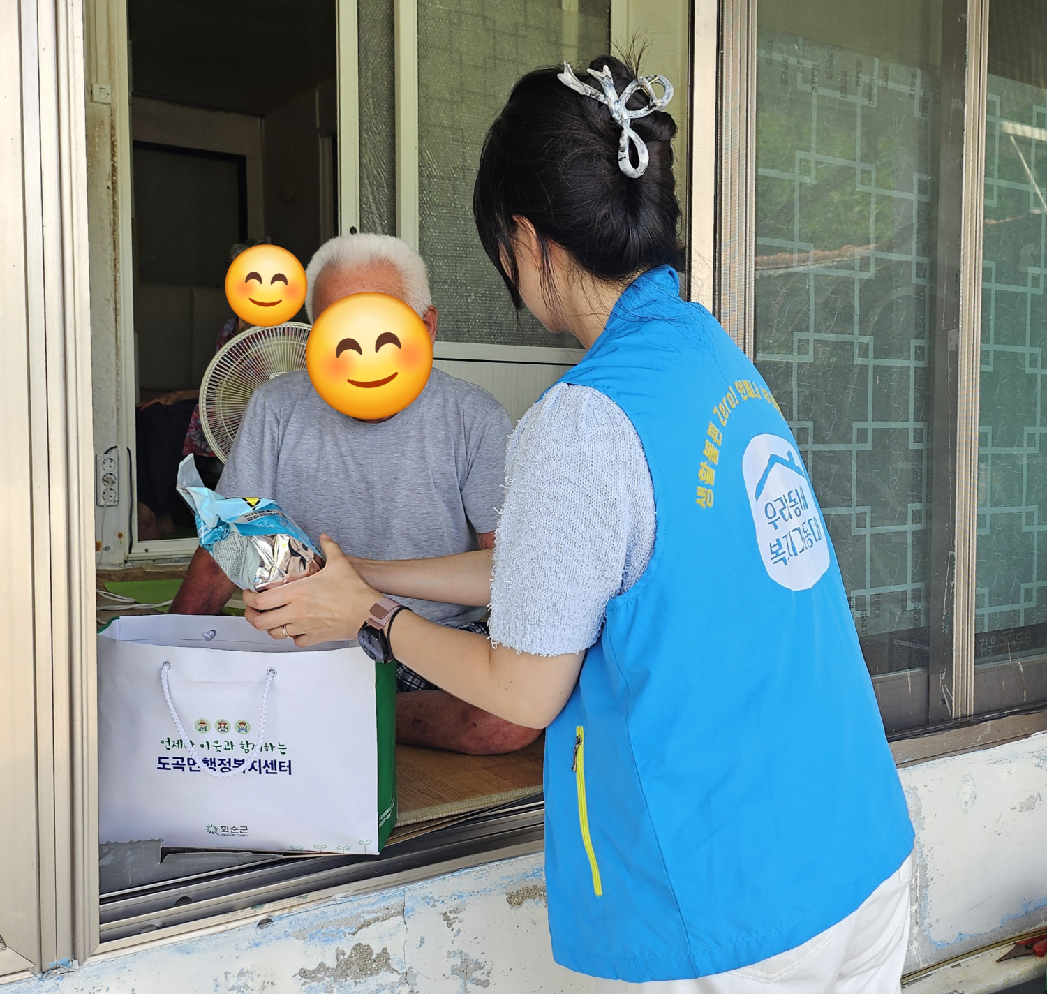 도곡면 복지기동대가 관내 취약계층 가정을 방문하여 안부를 확인하고 생활에 필요한 물품들을 전달했습니다.