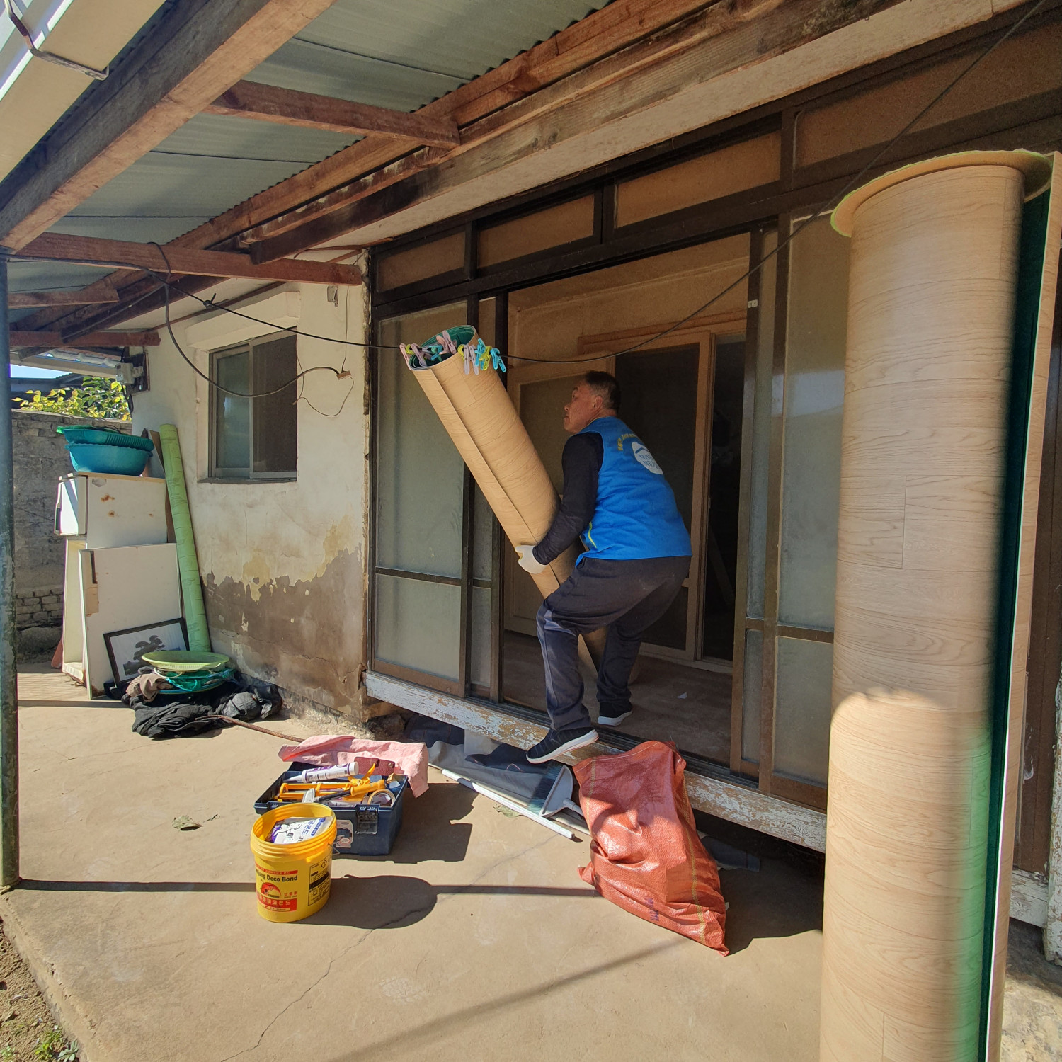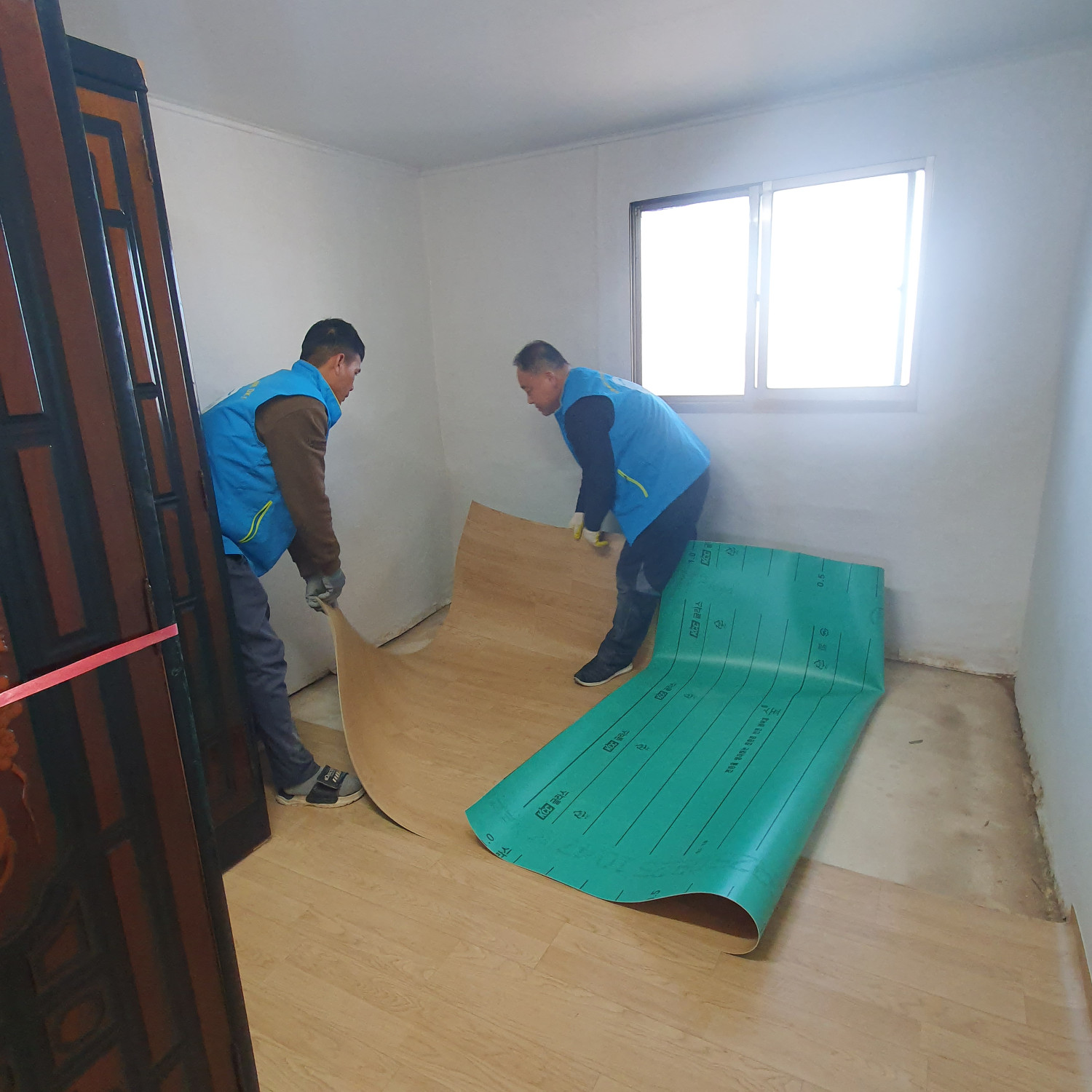 바닥에서 습기가 올라와 장판이 엉망이었던 대상자의 장판공사를 해드렸습니다.