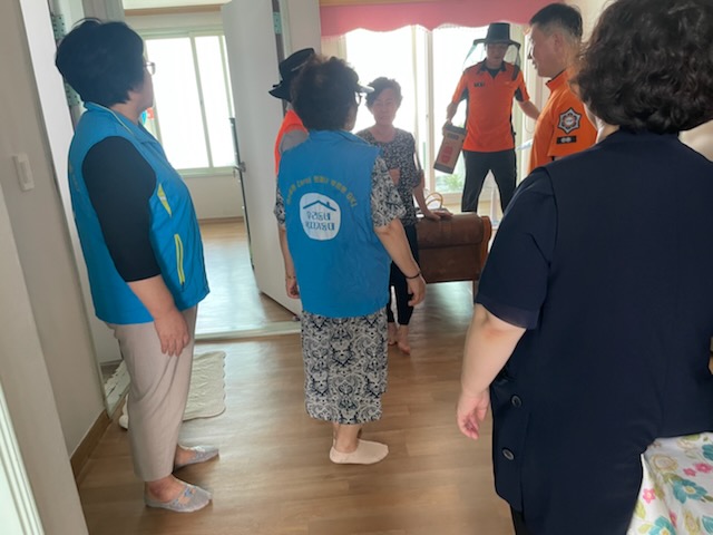 복지기동대원과 의용소방대 나주소방서119 안전순찰대원 참여 하 자동소화멀티탭 및 소화패치 설치 완료 및 화재대응 요령 안내 완료