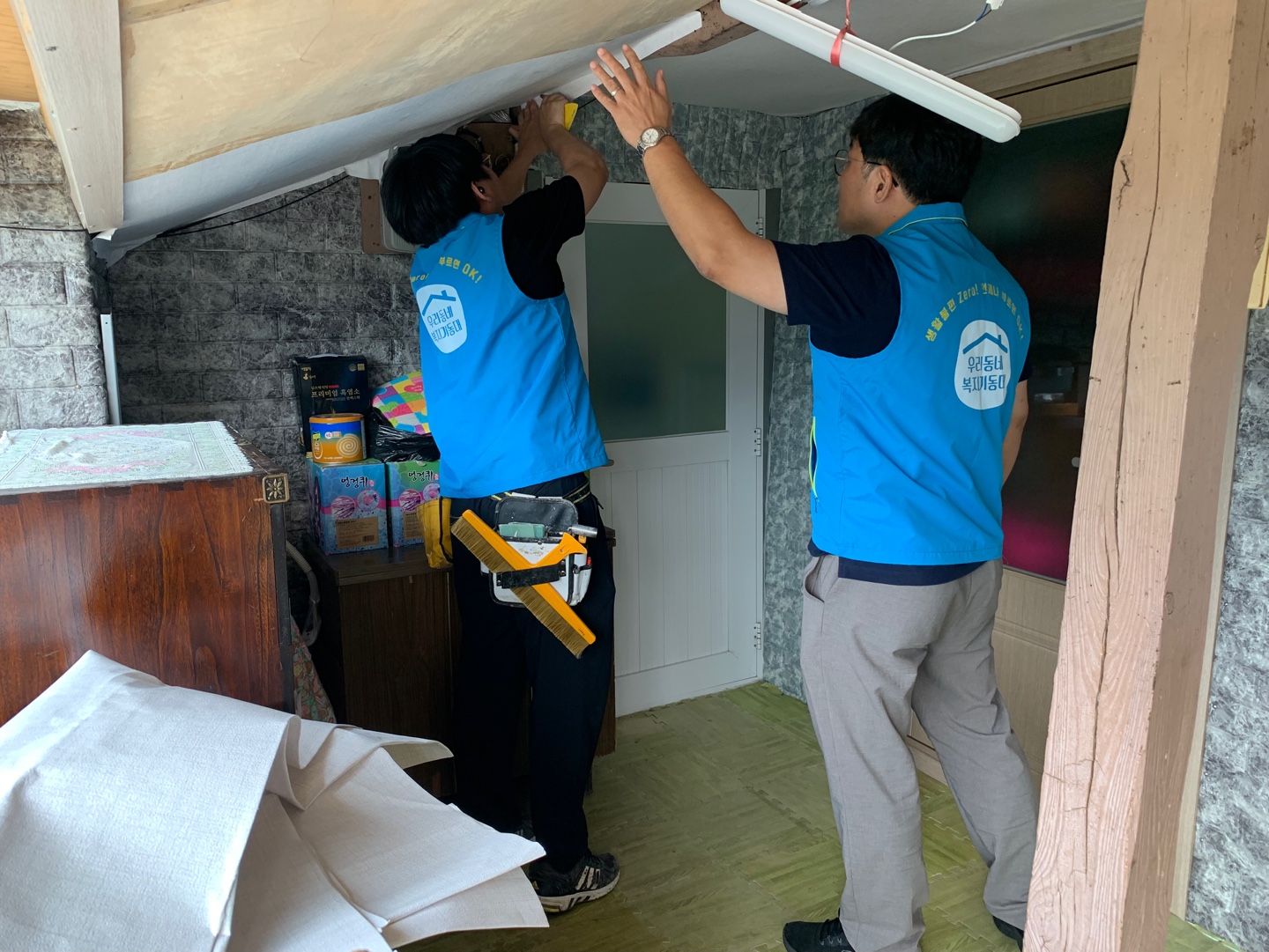 삼일동복지기동대에서 도배, 장판이 변색되어 교체가 필요한 어르신의 집수리를 추진하였습니다