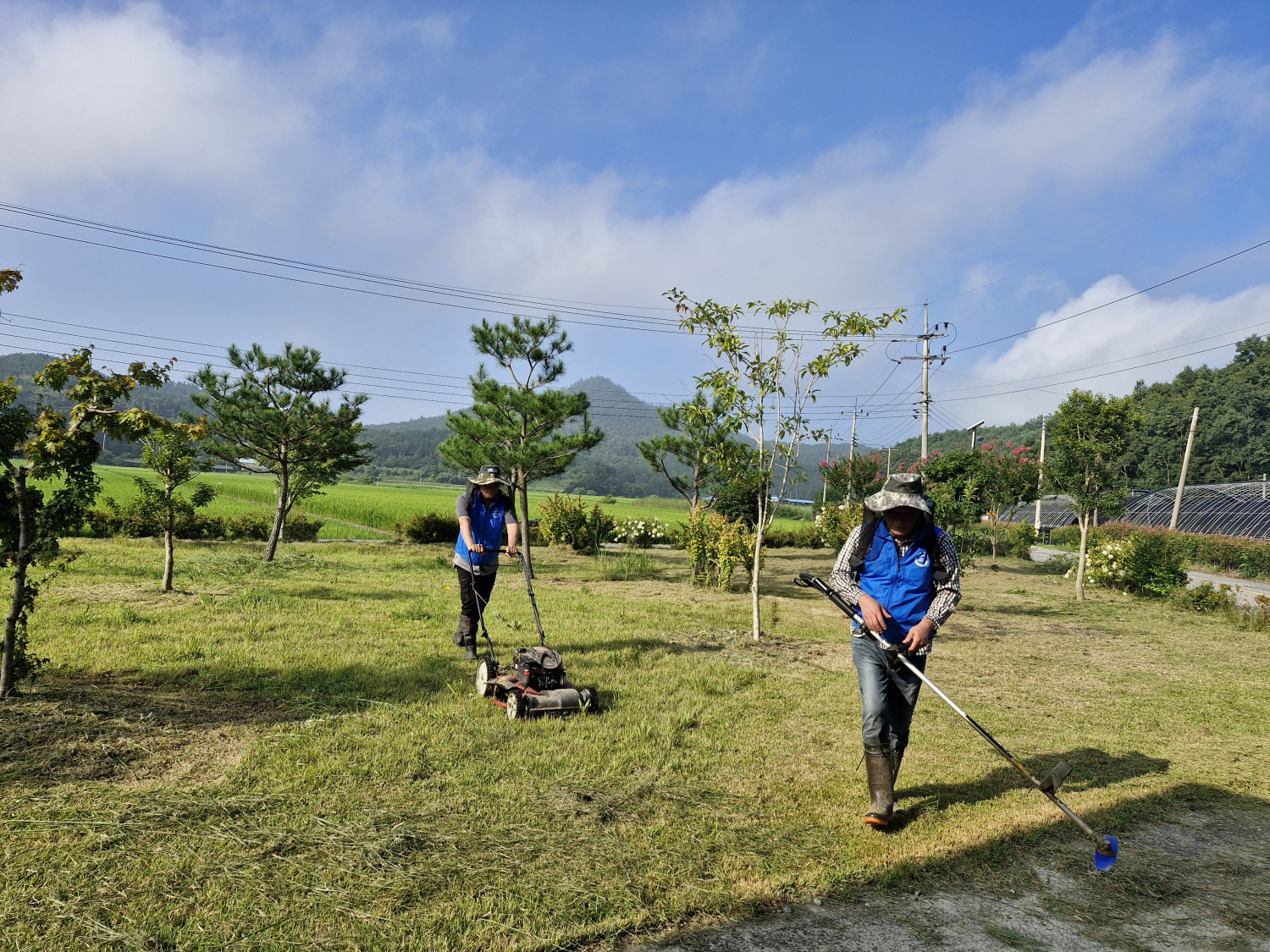 잔디 깎는 분들~옆모습 뒷모습 기럭지며 비주얼이 후덜덜~심상치 않네요. 검나 멋져분러요~^^