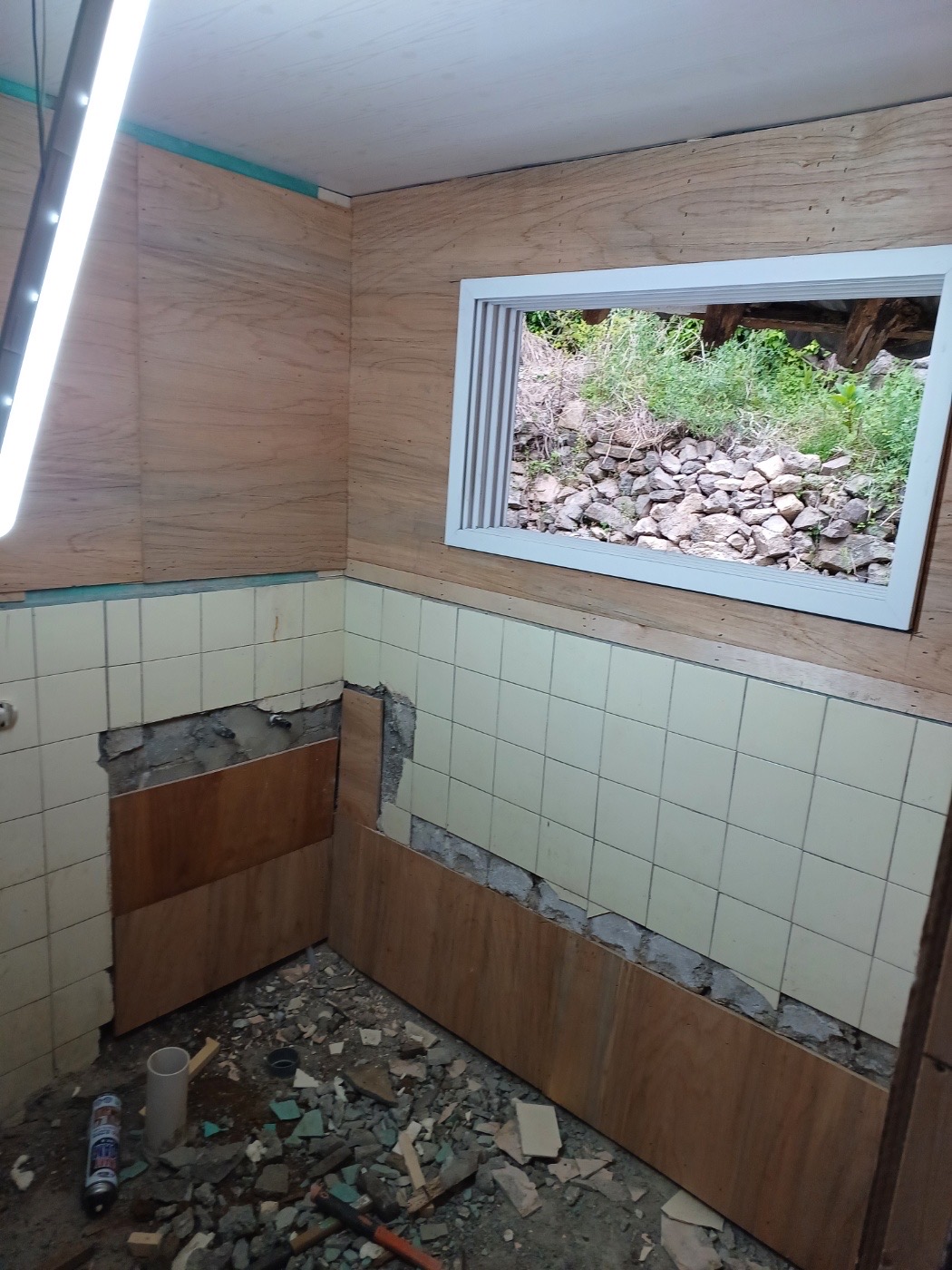 타일은 깨져 발을 디딜 수 없을 정도였으며,