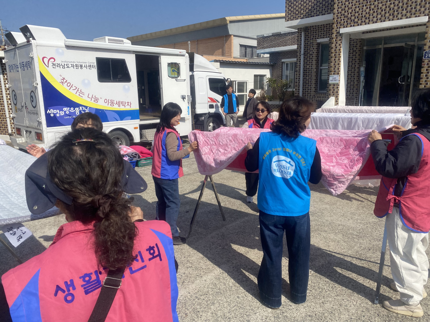 내용: 찾아가는 나눔 이동세탁 자원봉사를 통해 취약계층 및 독거노인 이불 37채 이불세탁후 각 가정 배달까지 완료함
